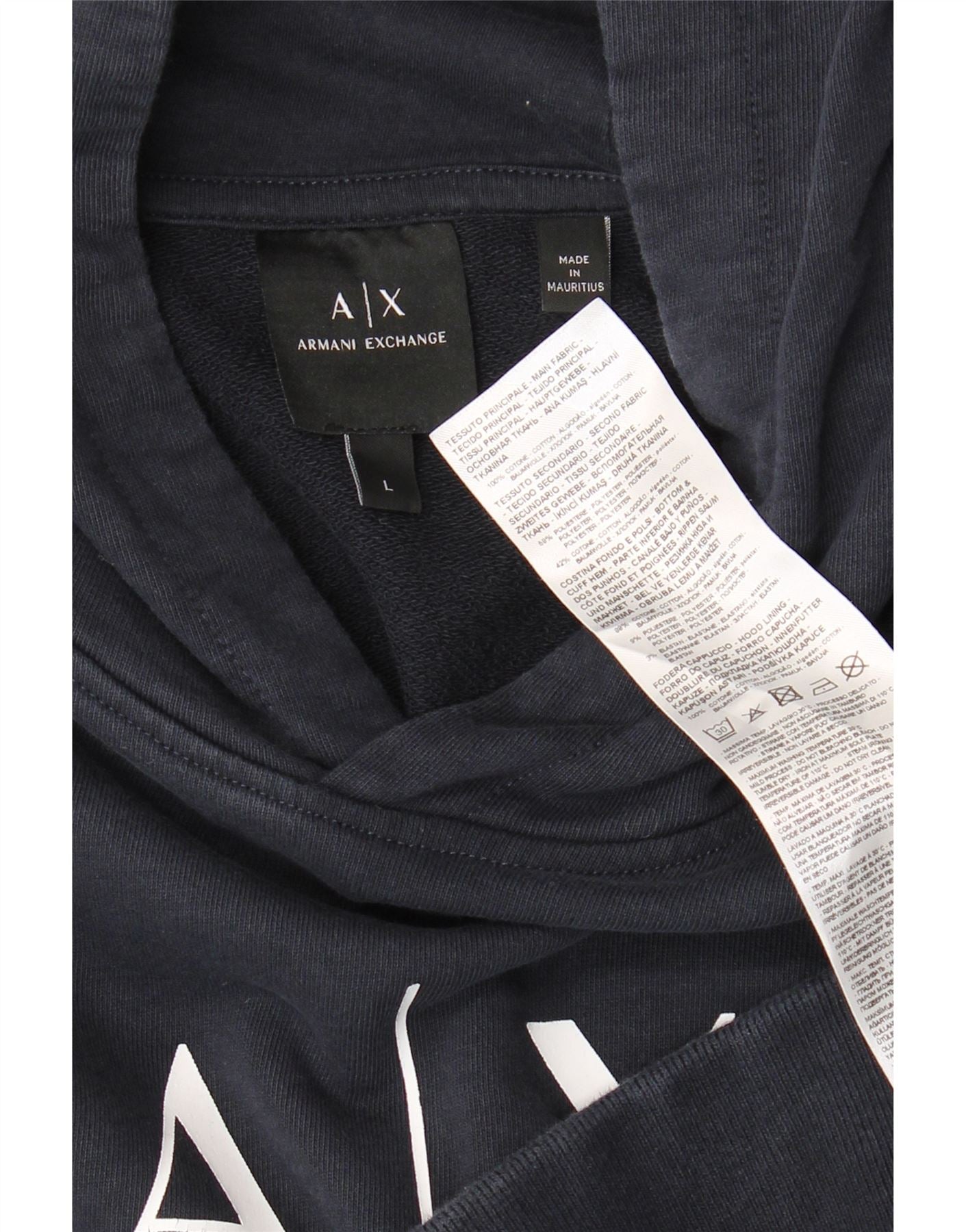 ARMANI EXCHANGE Męski sweter z kapturem i grafiką, duży, granatowy, bawełniany