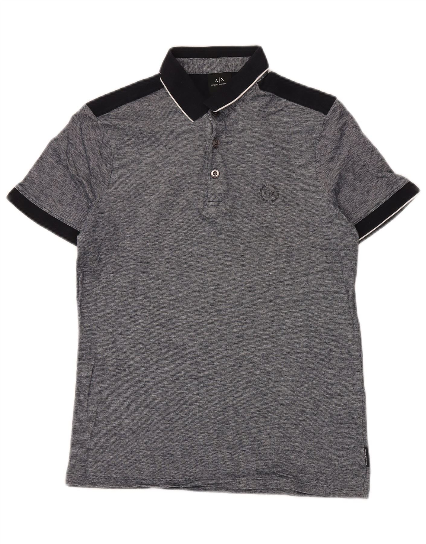 Męska koszulka polo ARMANI EXCHANGE, mała, szara, bawełniana w bloki kolorów