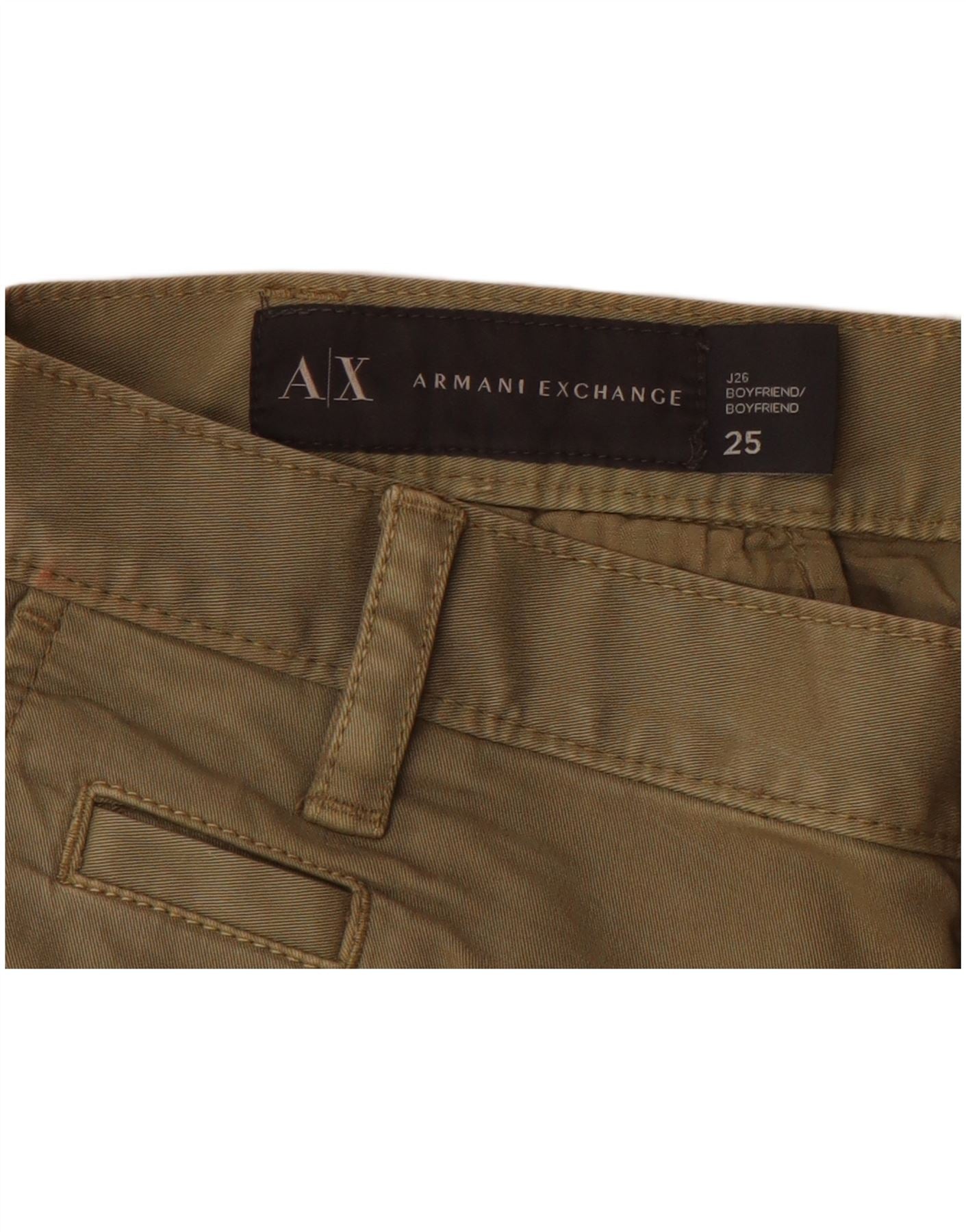 ARMANI EXCHANGE Womens Boyfriend Slim Chino Trousers W25 L29 Khaki Cotton
