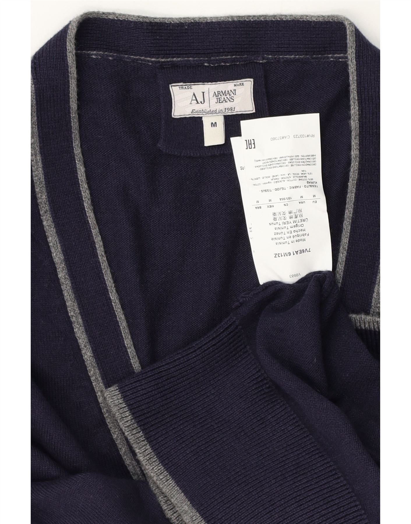 ARMANI JEANS Męski sweter rozpinany Średni granatowy, bawełniany blok kolorów