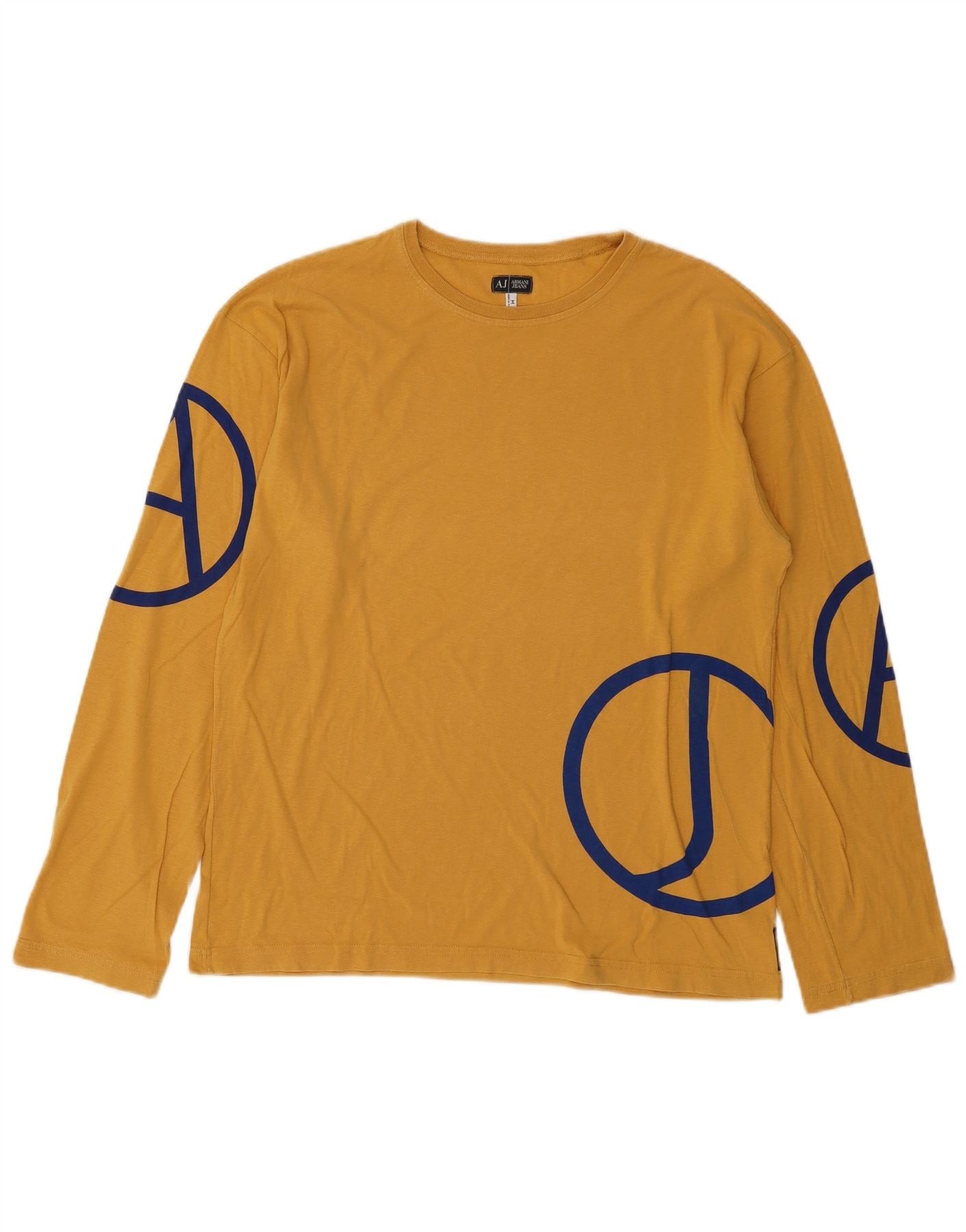 Armani Jeans Męski graficzny top z długim rękawem, średniożółty, bawełniany