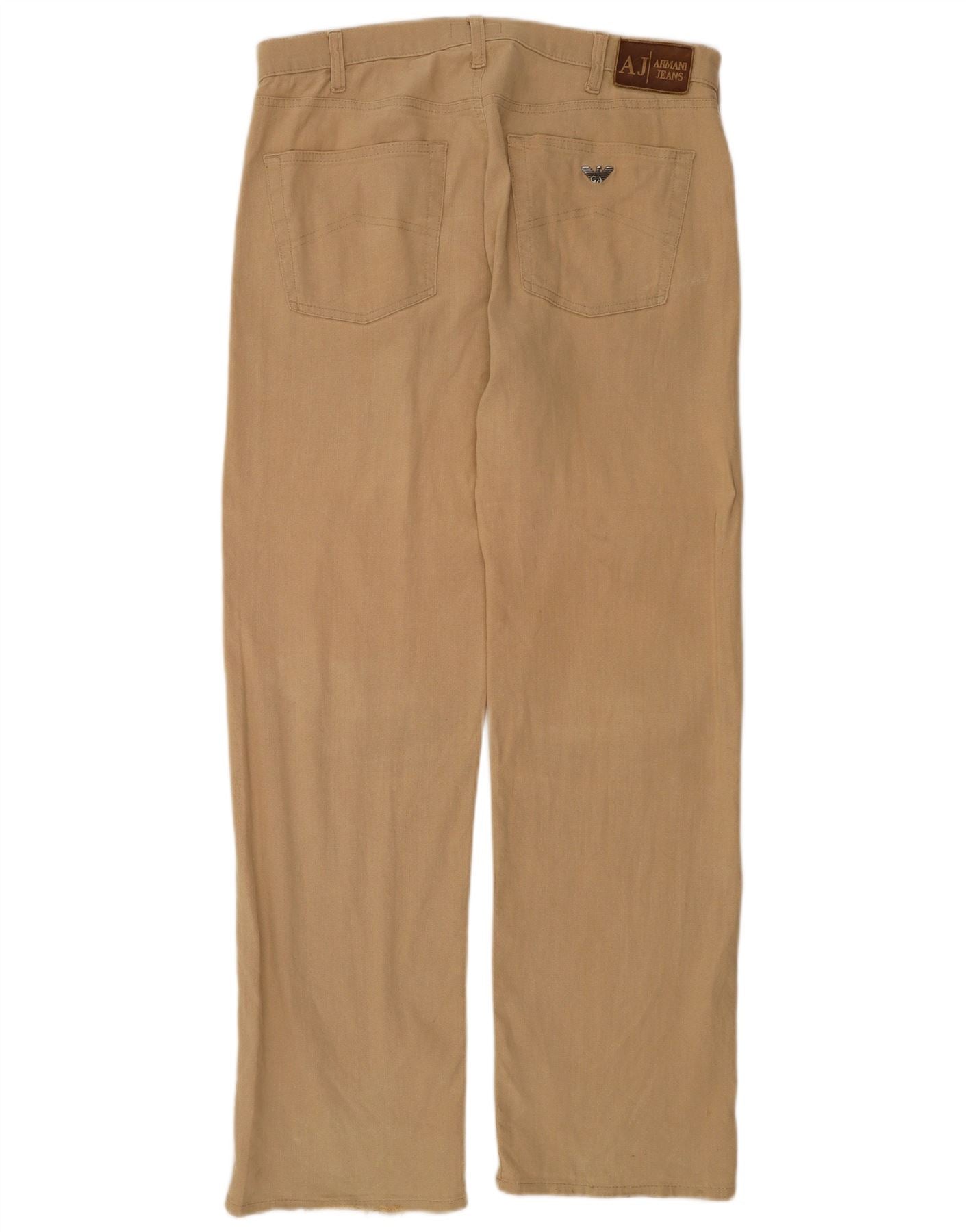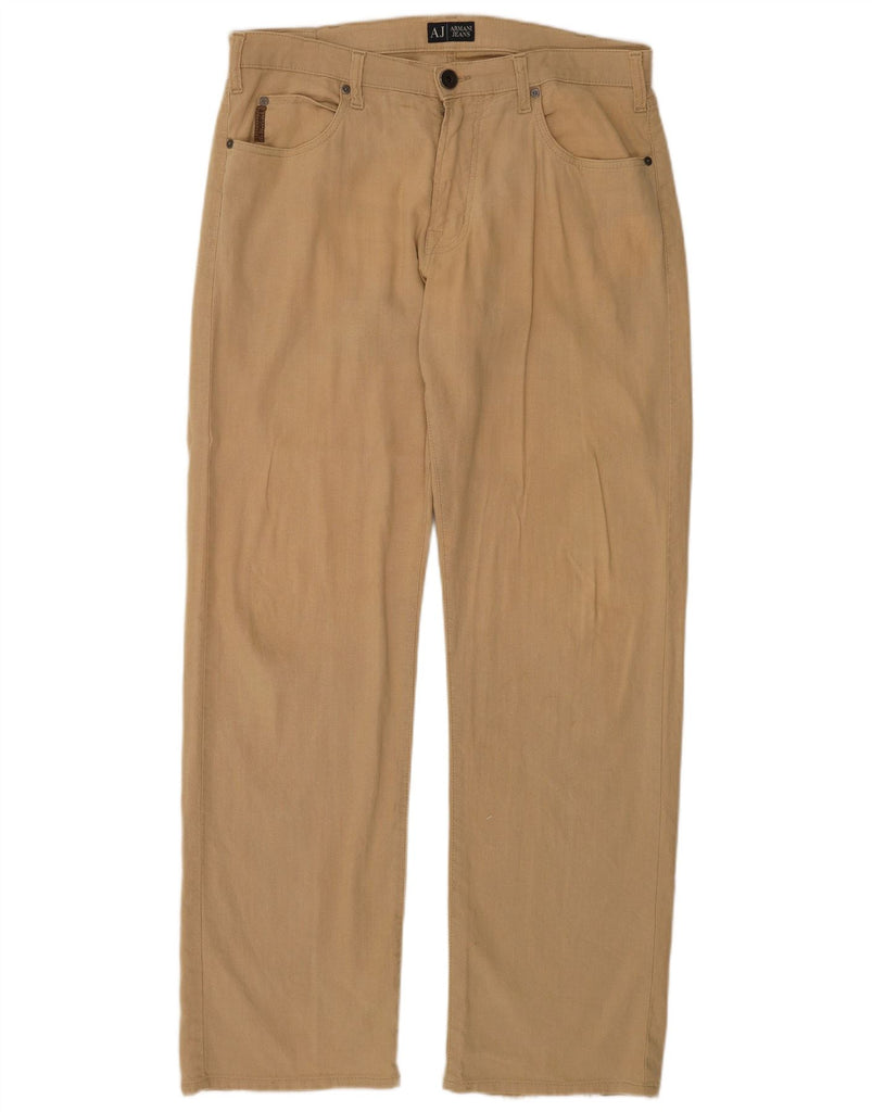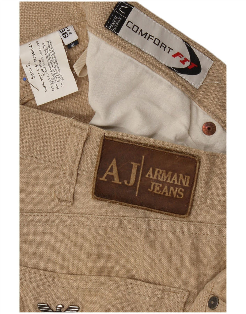 ARMANI Mens Comfort Fit Straight Casual Trousers W36 L32 Beige Linen