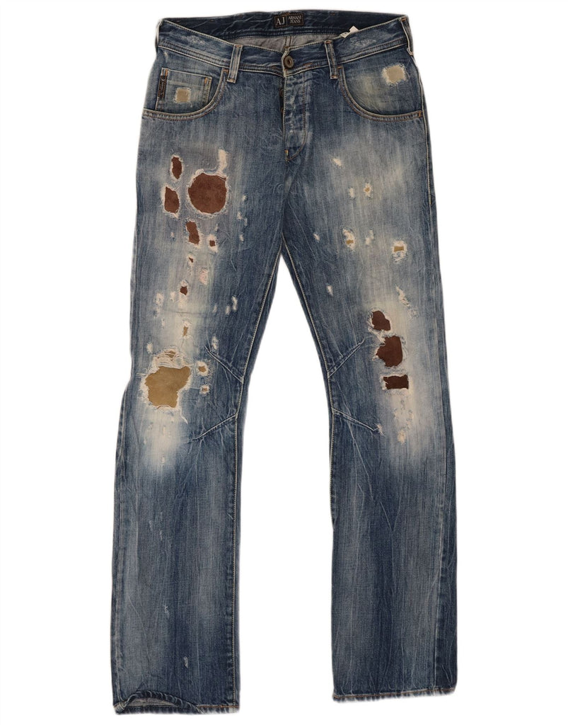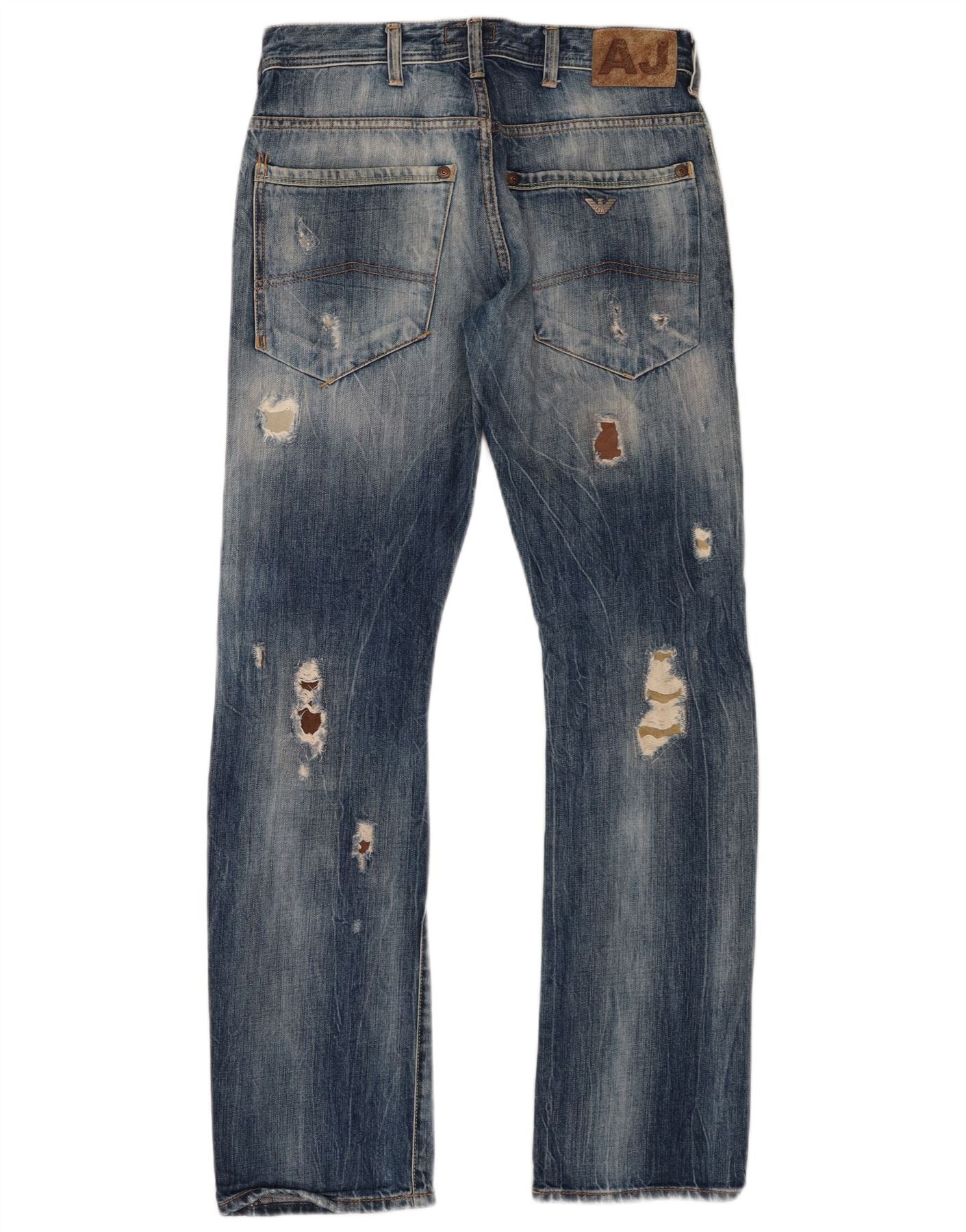 ARMANI Mens Distressed Straight Jeans W30 L33 Blue Cotton