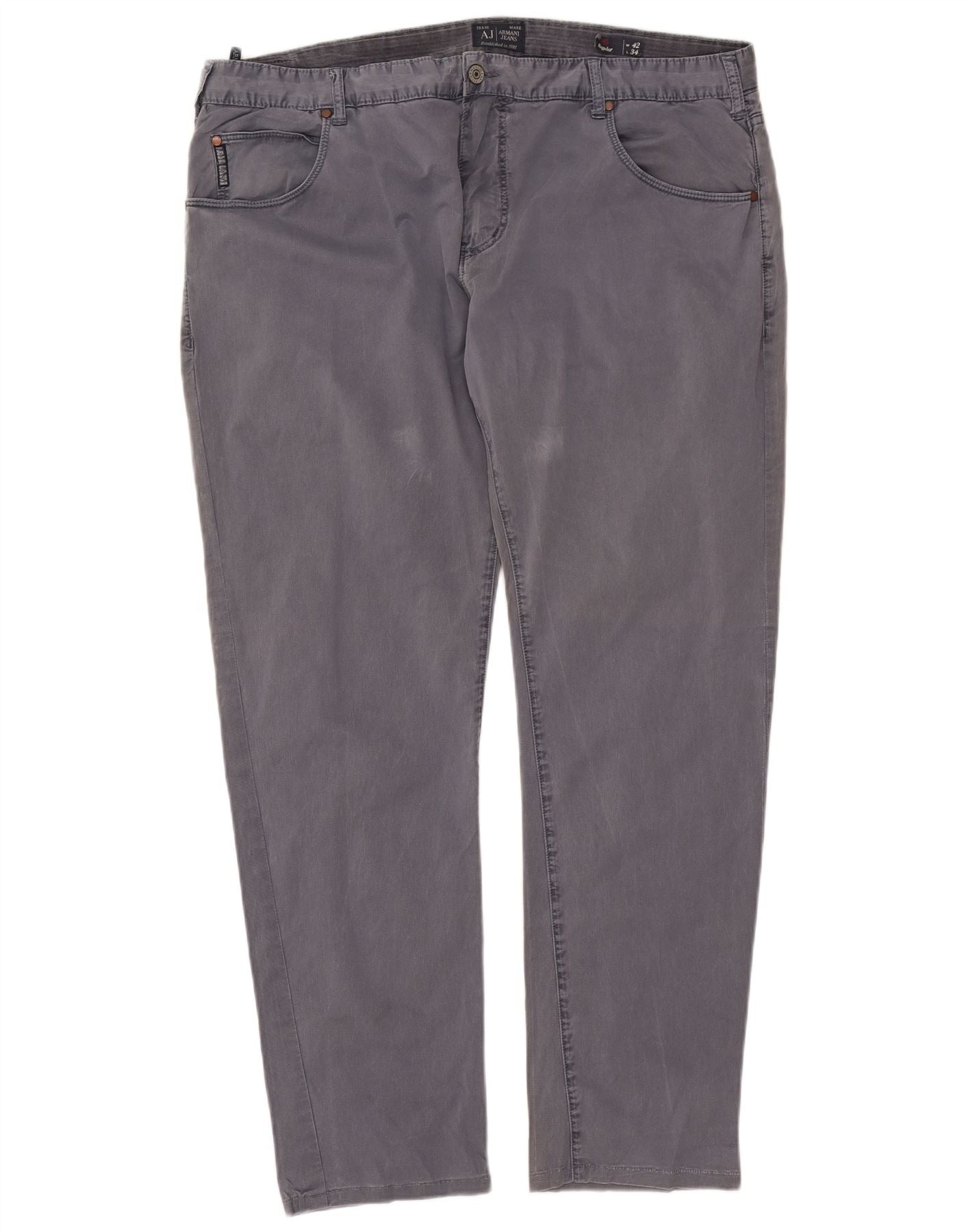 - AI Description: These Armani Jeans mens straight jeans are crafted from a grey denim blend, offering both comfort and durability. They feature a classic straight leg and a regular fit for timeless appeal. The button closure ensures a secure and traditional fastening. Practical pockets are included, complemented by a subtle brand logo accent. This classic style provides versatile wear for any casual occasion.