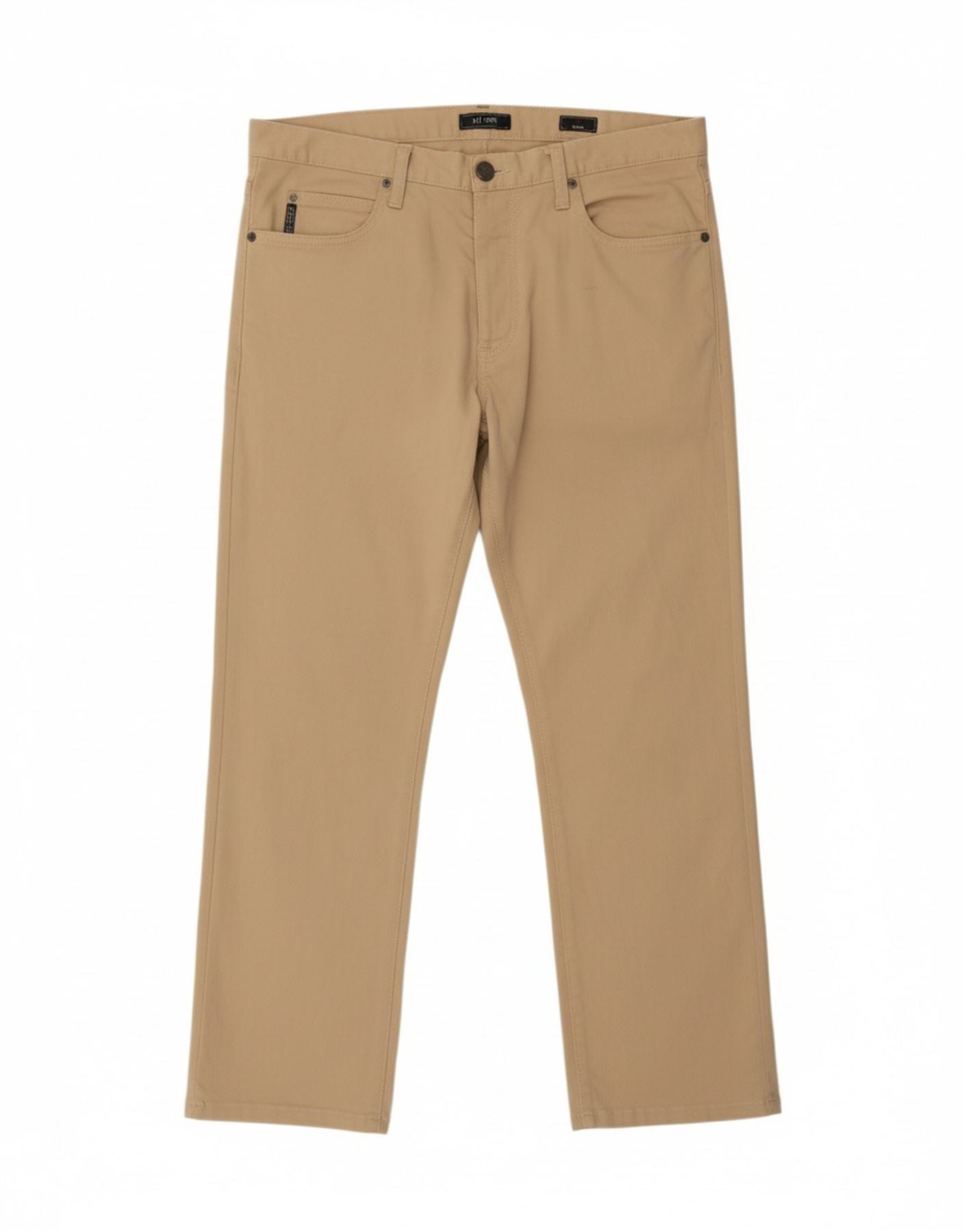ARMANI Mens Straight Casual Trousers W34 L28 Beige Cotton