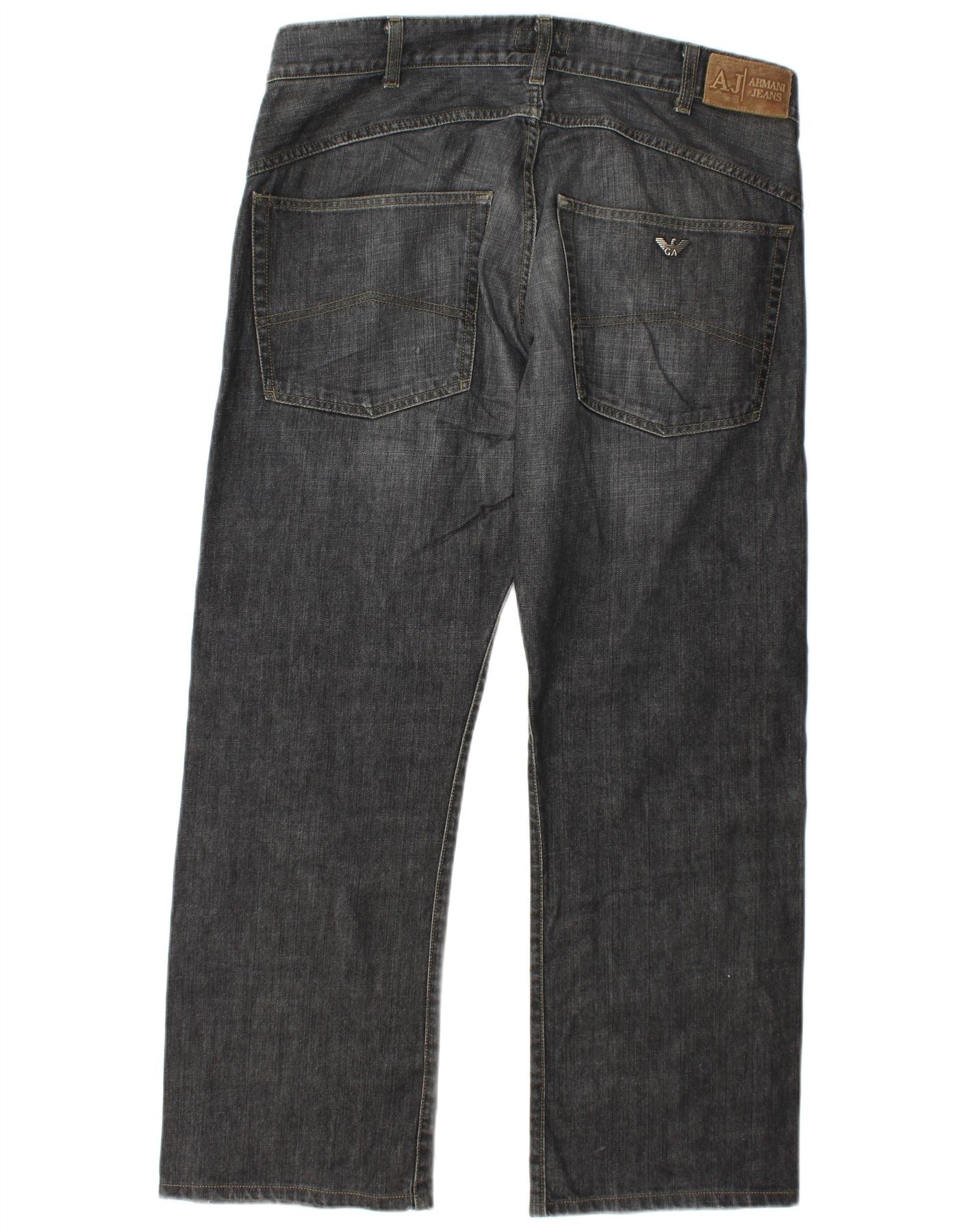 - AI Description: These Emporio Armani mens Straight Jeans are crafted from durable grey denim. They feature a classic straight leg cut for a timeless silhouette. A button closure secures the front. Practical pockets are included for everyday utility. The regular fit ensures comfortable wear. This design offers a versatile foundation for any casual wardrobe.