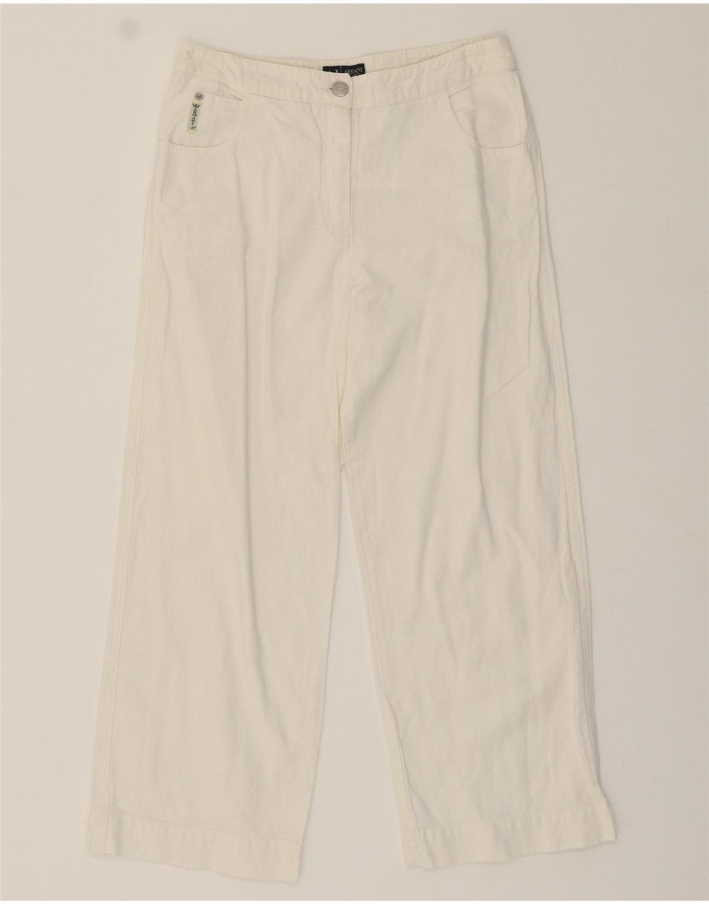 ARMANI Womens Loose Fit Cropped Trousers UK 8 Small W26 L23 White Linen
