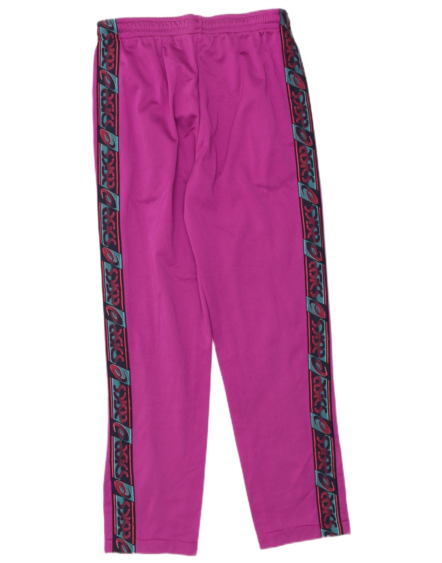 Męski pełny dres Asics z grafiką, mały, różowy, z blokami kolorów, poliamid, retro