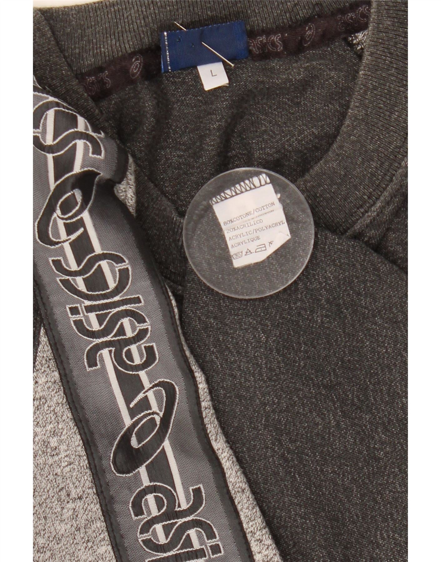 Home > Odzież vintage Asics > Męska odzież Asics w stylu vintage > Koszulki > Męska koszulka z grafiką Asics, duża, szara, nakrapiana bawełna