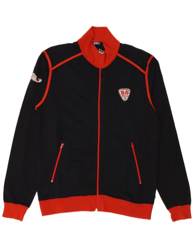 ASICS Mens Graphic Tracksuit Top Jacket 2XL Black Colourblock Cotton