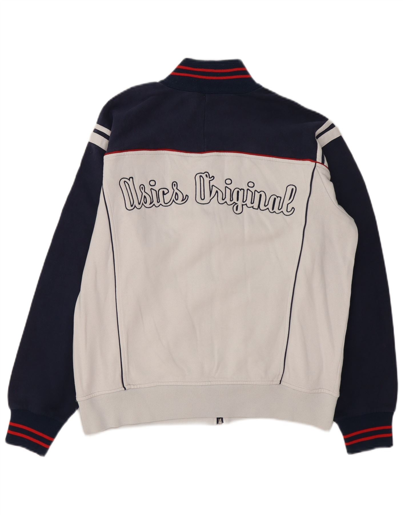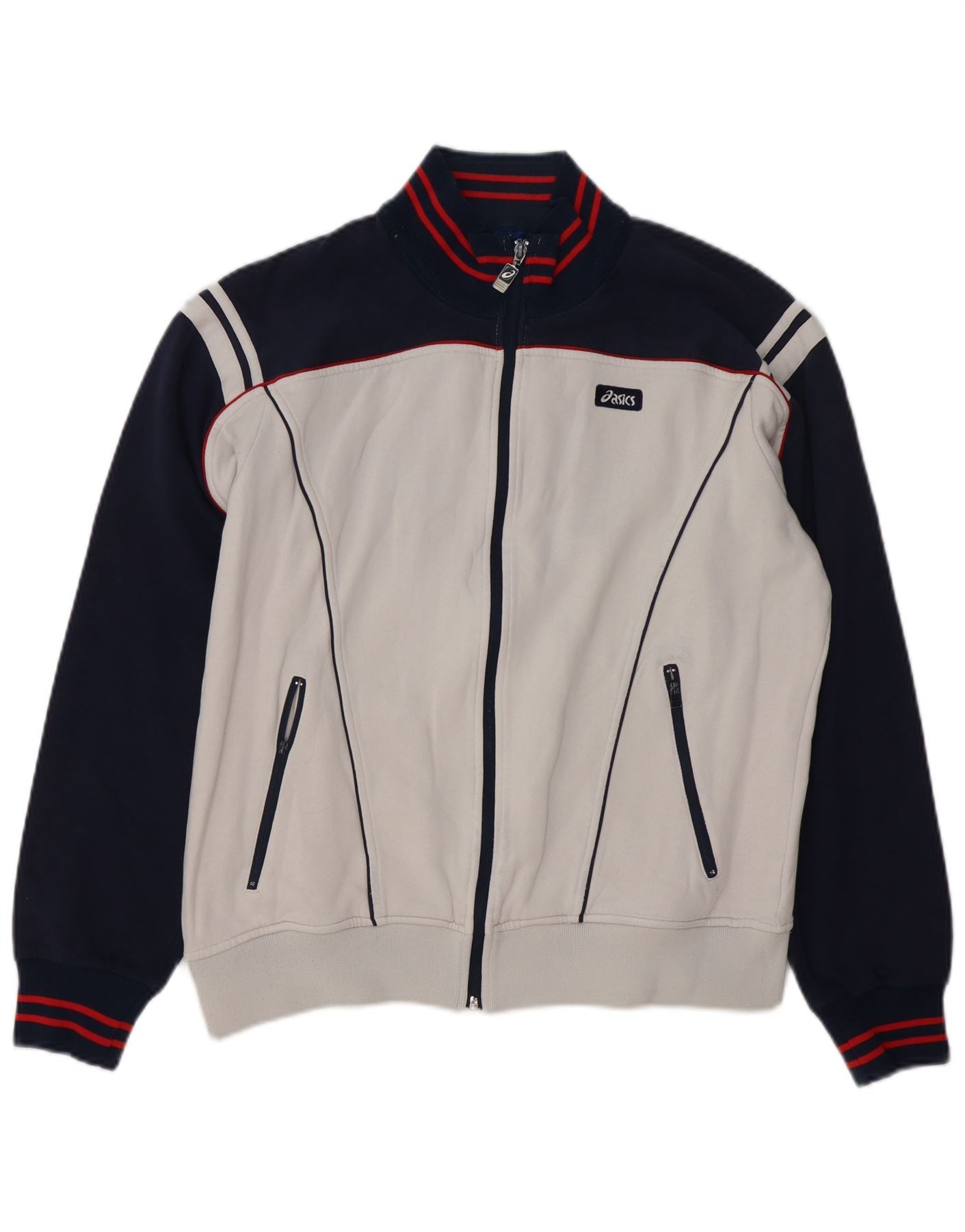Home > Odzież vintage Asics > Męska odzież Asics w stylu vintage > Topy dresowe > Męska kurtka dresowa ASICS z grafiką, duża, biała, z blokami kolorów