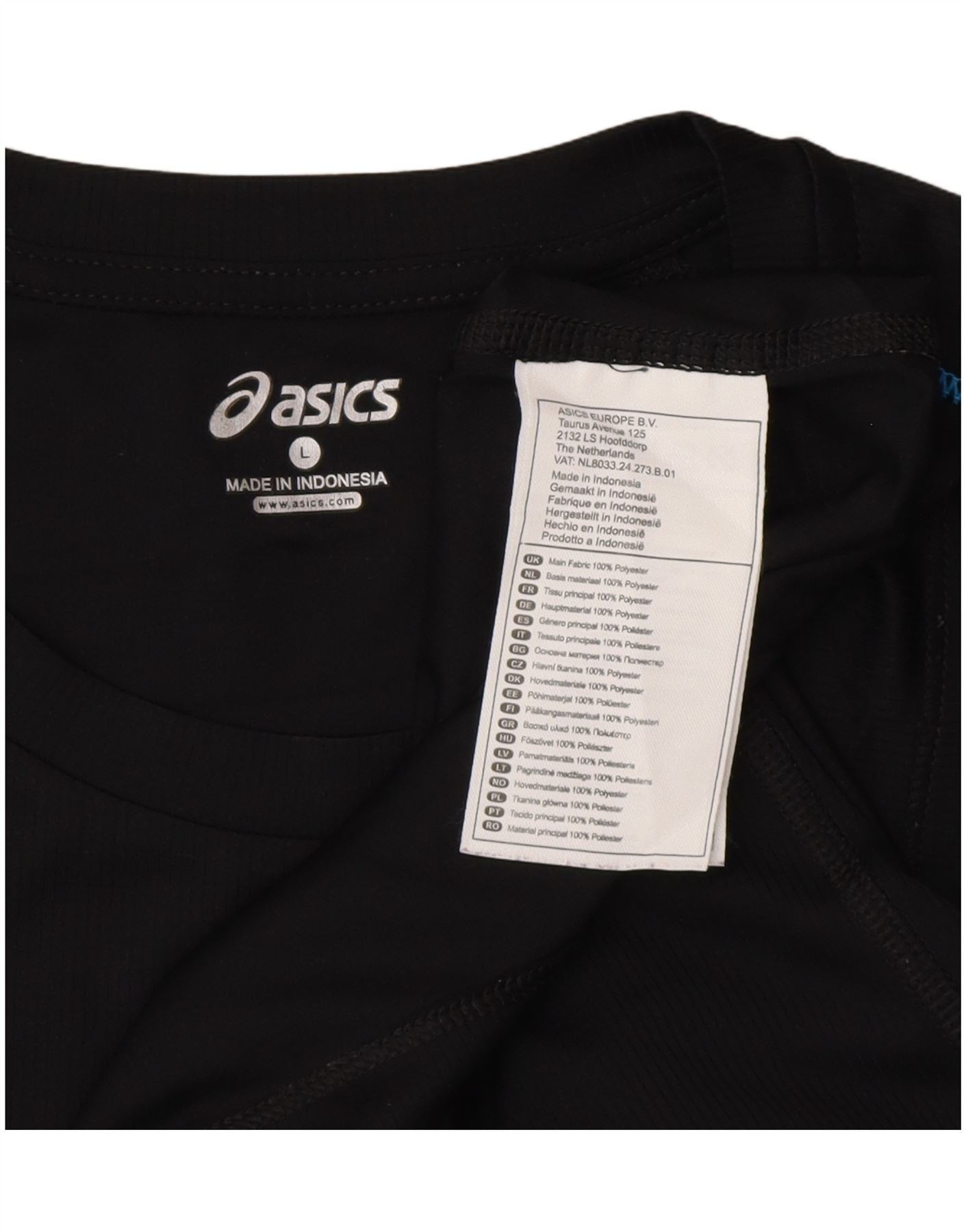 - AI Description: This Asics mens Graphic T-Shirt Top is crafted from 100 percent polyester knit, offering a lightweight and breathable feel. Its classic round neck and short sleeves provide a comfortable, athletic fit. The pullover design ensures ease of wear. A subtle logo accent adds a signature touch to this performance-focused garment, ideal for sports activities.