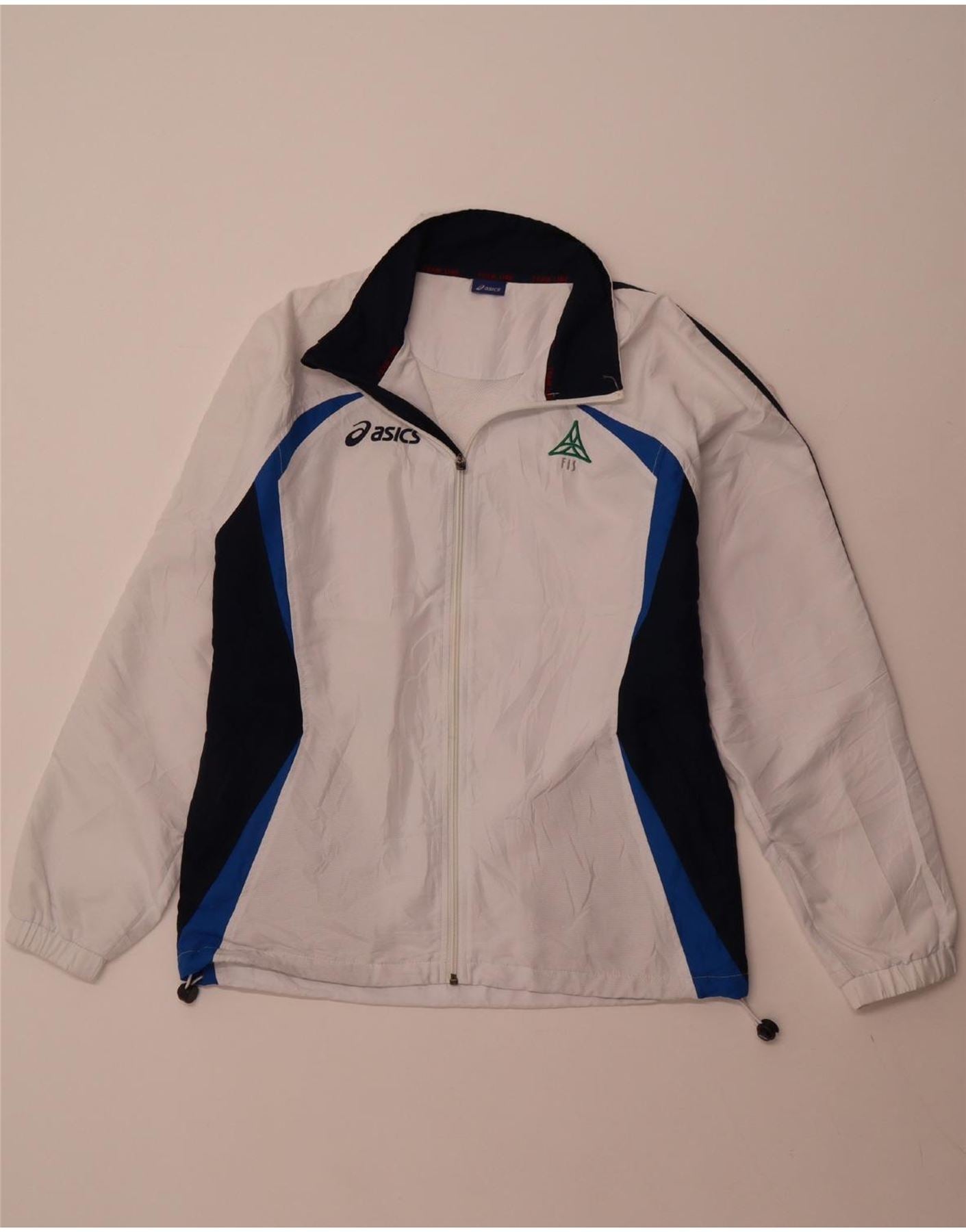 Home > Odzież vintage Asics > Męska odzież Asics w stylu vintage > Topy dresowe > Męska kurtka dresowa ASICS, duża, biała, poliestrowa z blokami kolorów