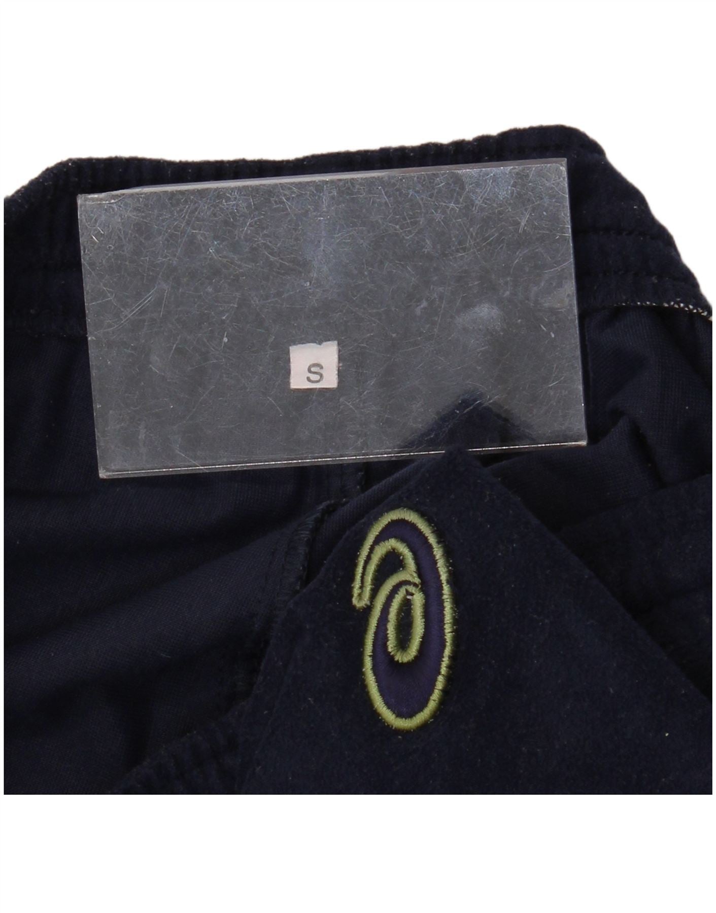 Home > Odzież vintage Asics > Męska odzież Asics w stylu vintage > Spodnie dresowe > Męskie welurowe spodnie dresowe ASICS, małe, granatowe