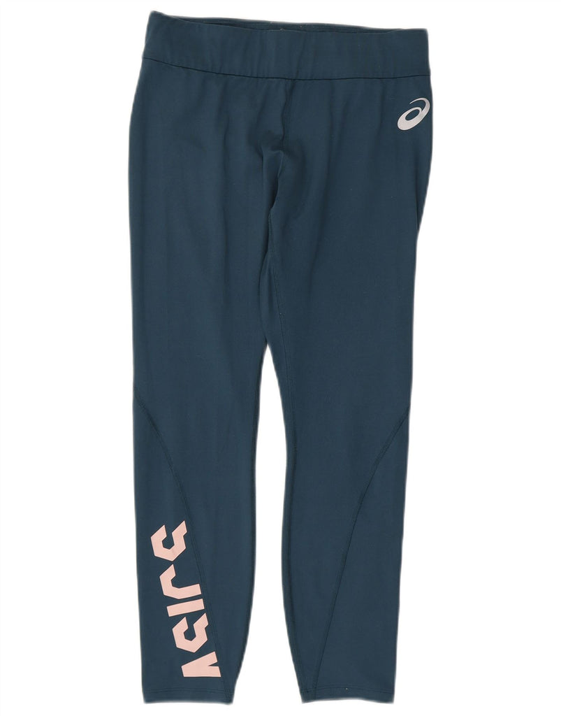 ASICS Womens Graphic Crop Tracksuit Trousers UK 12 Medium Navy Blue