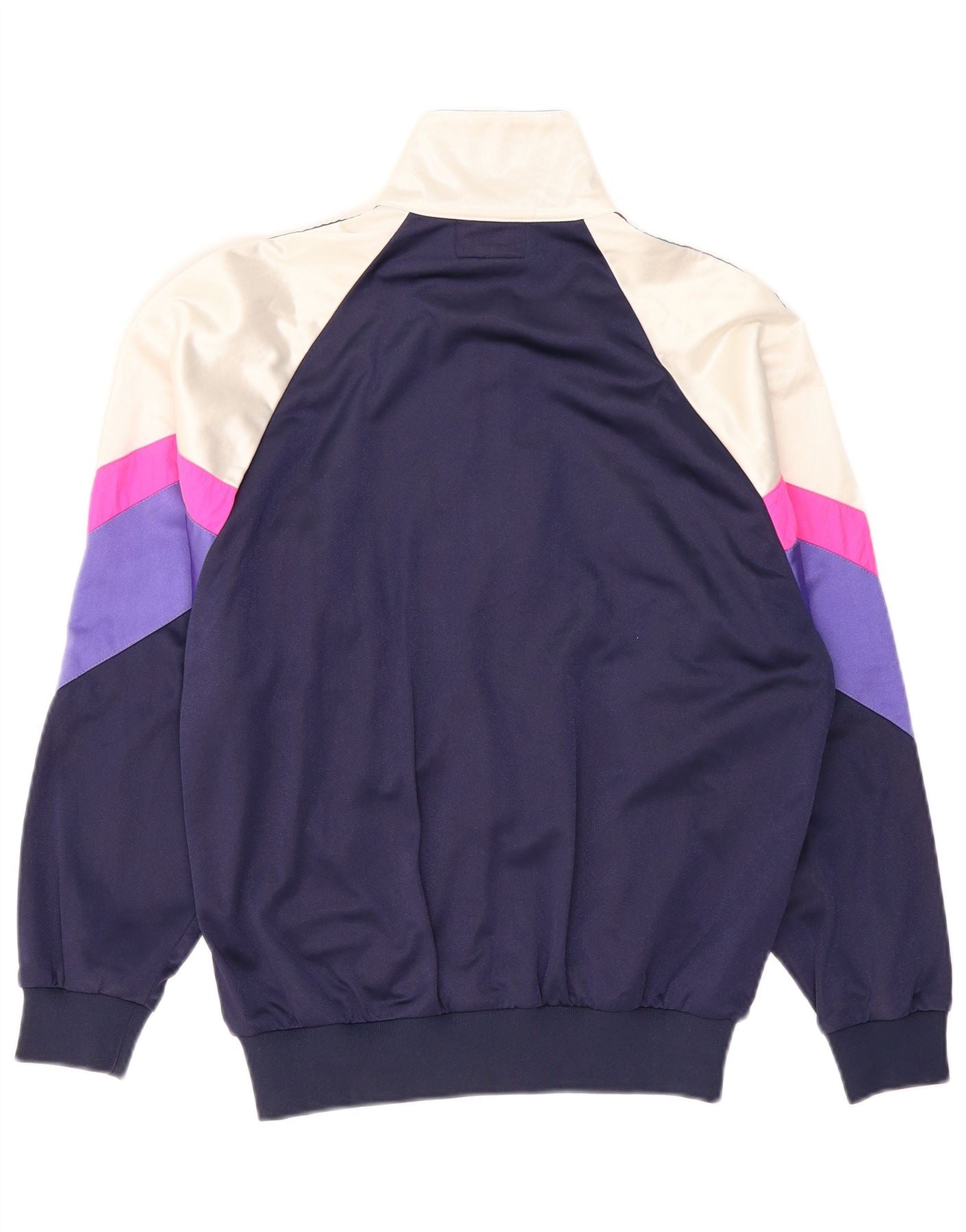 Home > Odzież vintage Asics > Damskie > Topy dresowe > Damska kurtka dresowa ASICS IT 46, duża, granatowa, z blokami kolorów
