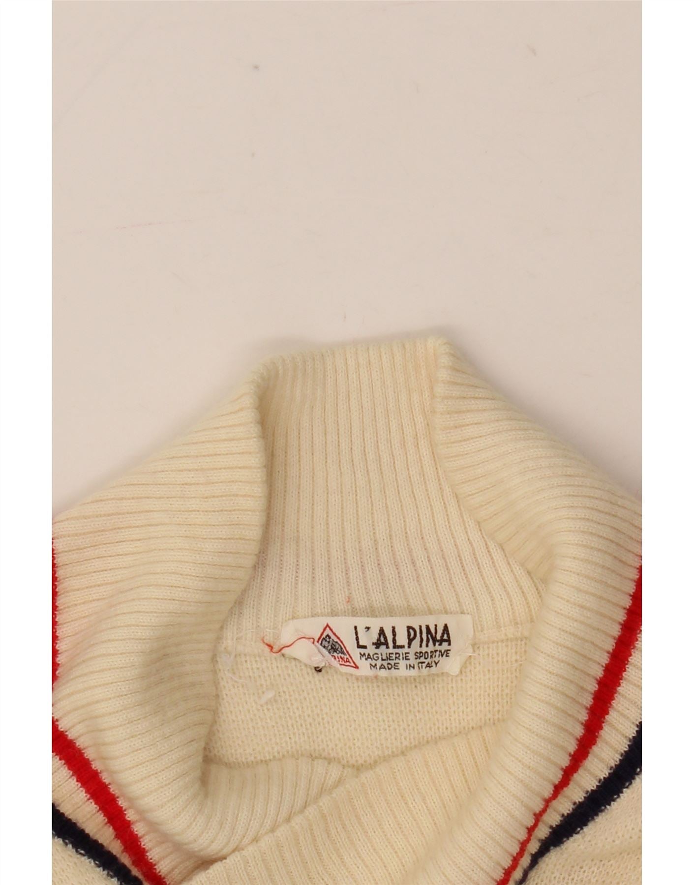 - Opis sztucznej inteligencji: Ten damski sweter w stylu vintage z dekoltem w kształcie litery V jest wykonany z miękkiej dzianiny w złamanej bieli. Posiada klasyczny dekolt w kształcie litery V z lamówką w czerwono-granatowe paski. Długie rękawy uzupełniają design swetra. Odważne czerwone i granatowe panele kolorystyczne biegną po bokach, tworząc uderzający geometryczny wzór. Subtelny detal z logo jest obecny. Ten sweter ma wygodny, regularny krój, zapewnia ciepło i rozciągliwość w sportowym stylu.