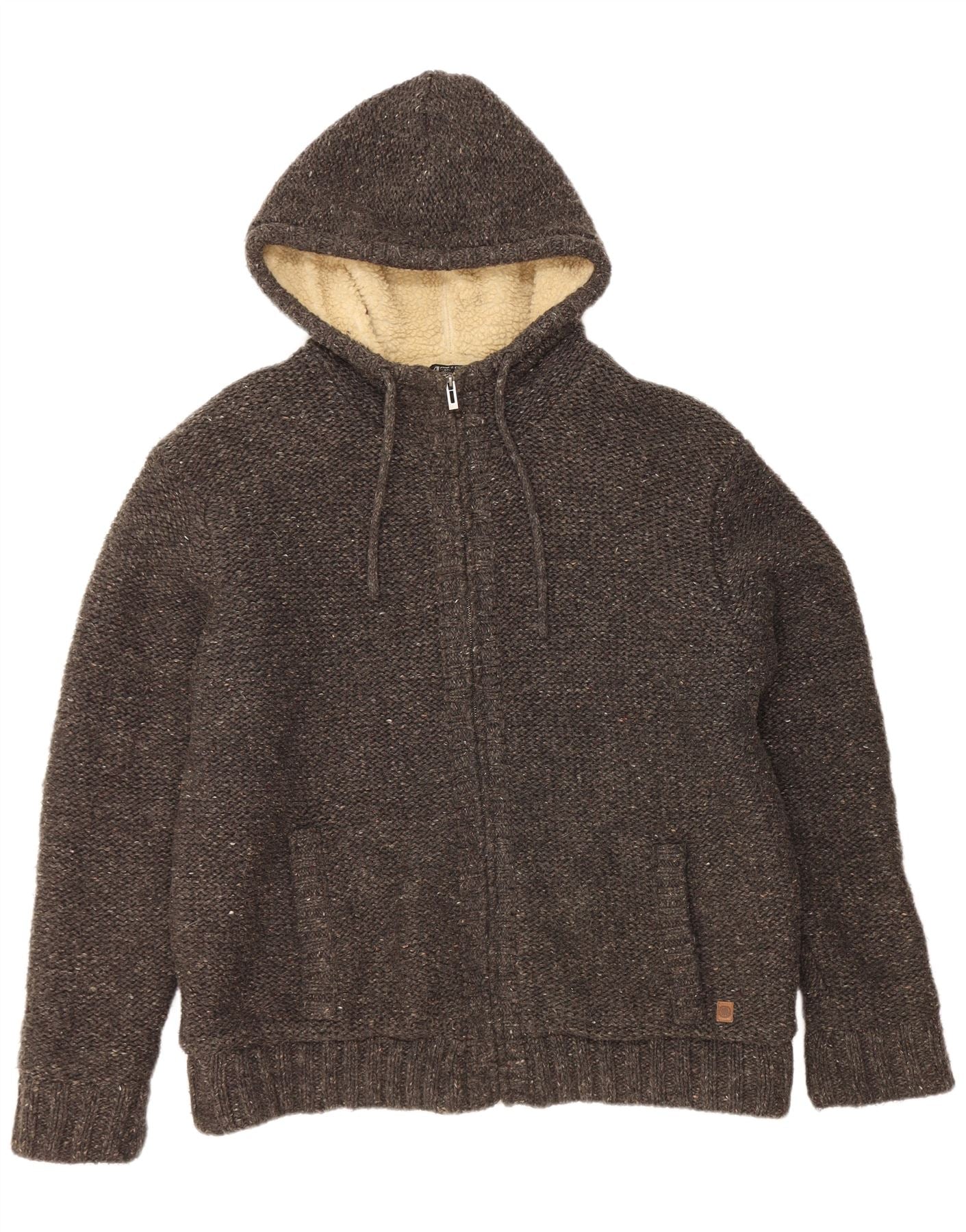 AUTENTYCZNY Męski sweter Sherpa z kapturem, 2XL, szary, nakrapiany akryl