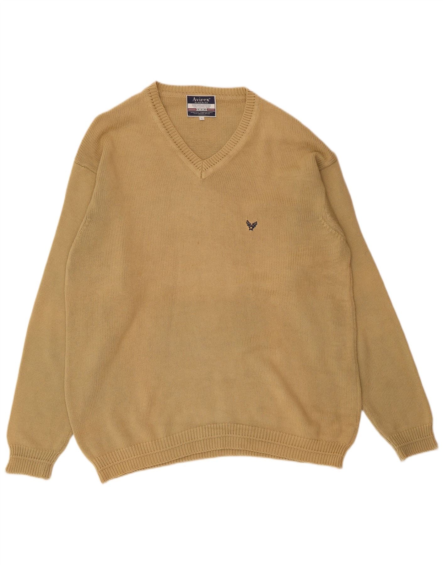 Home > Odzież vintage Avirex > Męskie > Avirex Męski sweter z dekoltem w kształcie litery V, duży, beżowy, bawełniany