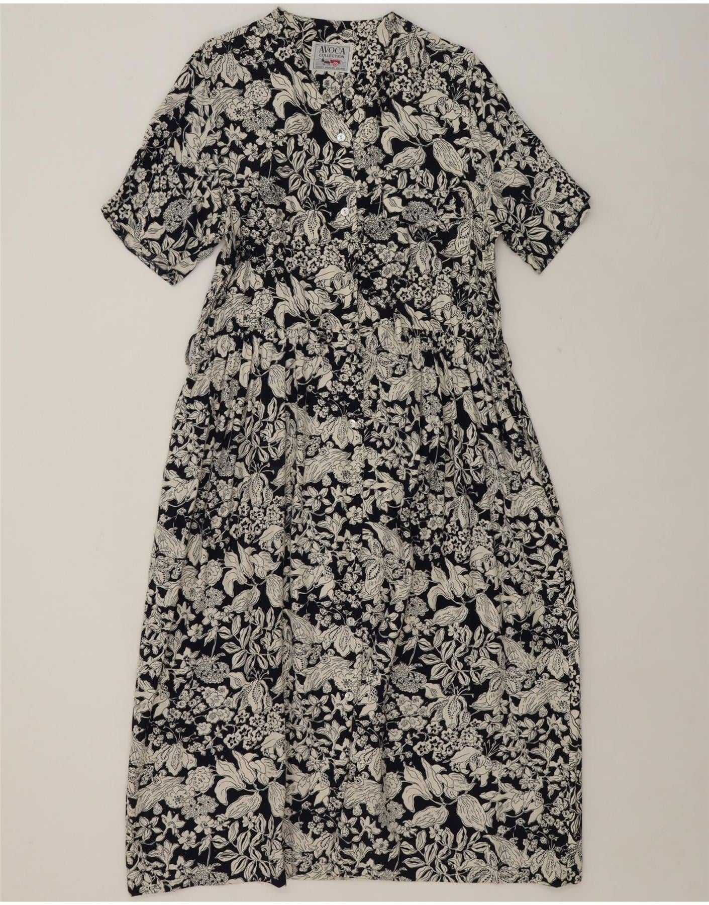 AVOCA Womens Short Sleeves Shirt Dress UK 14 Medium Black Floral Viscose