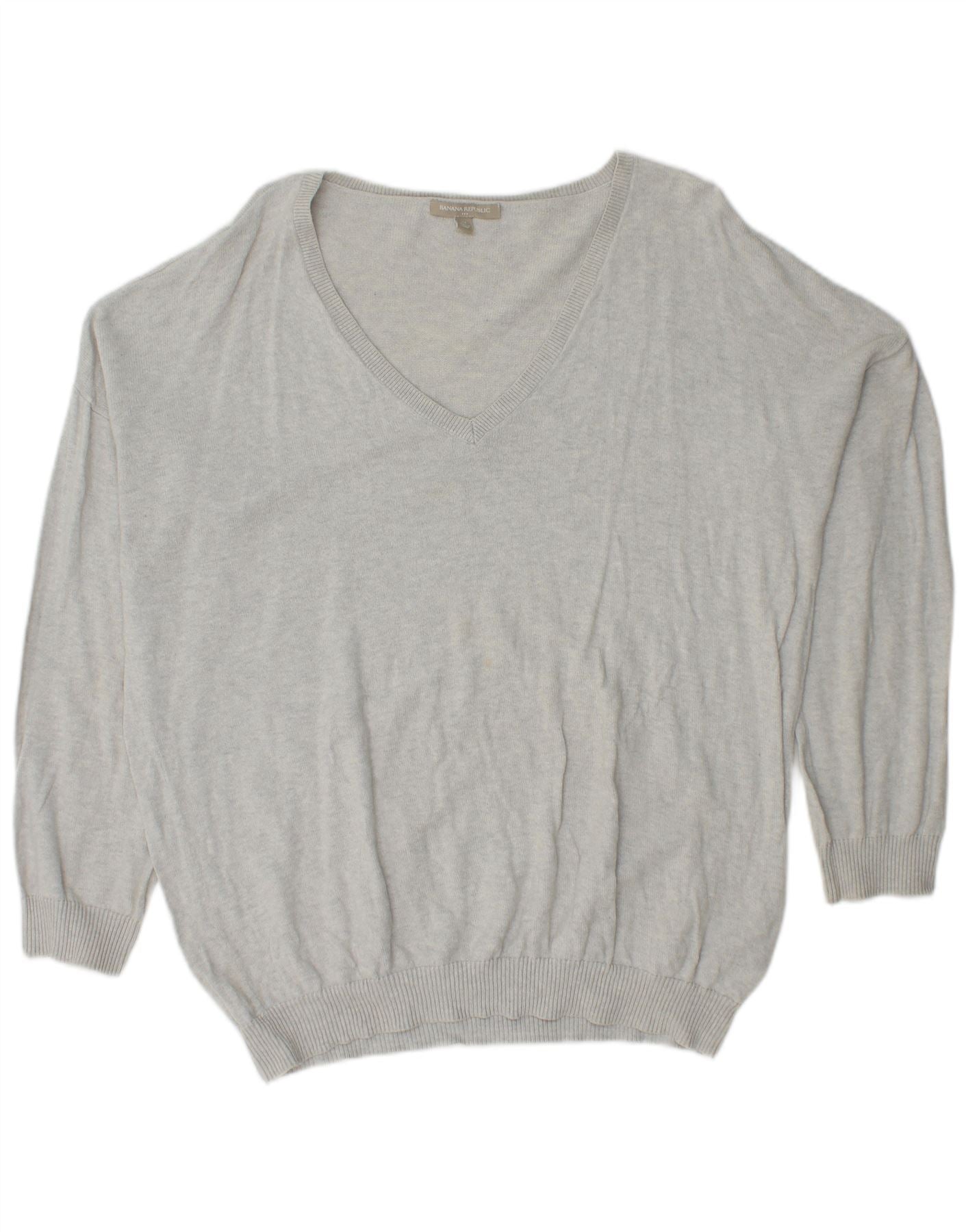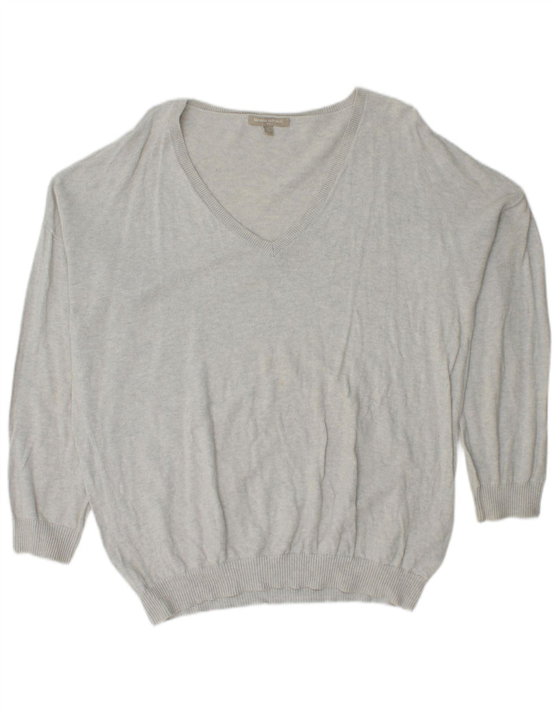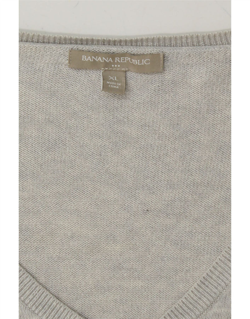 BANANA REPUBLIC Mens V-Neck Jumper Sweater XL Grey Cotton