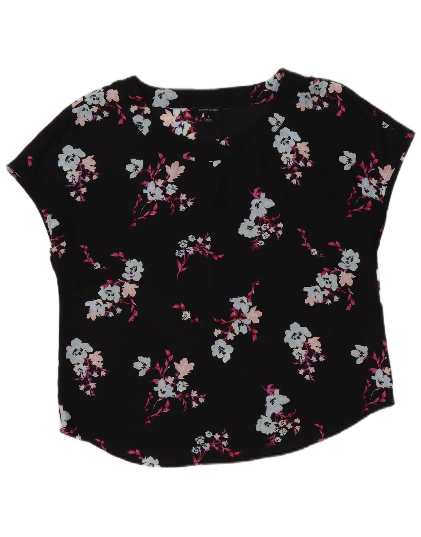 BANANA REPUBLIC Womens Oversized Blouse Top UK 10 Small Black Floral