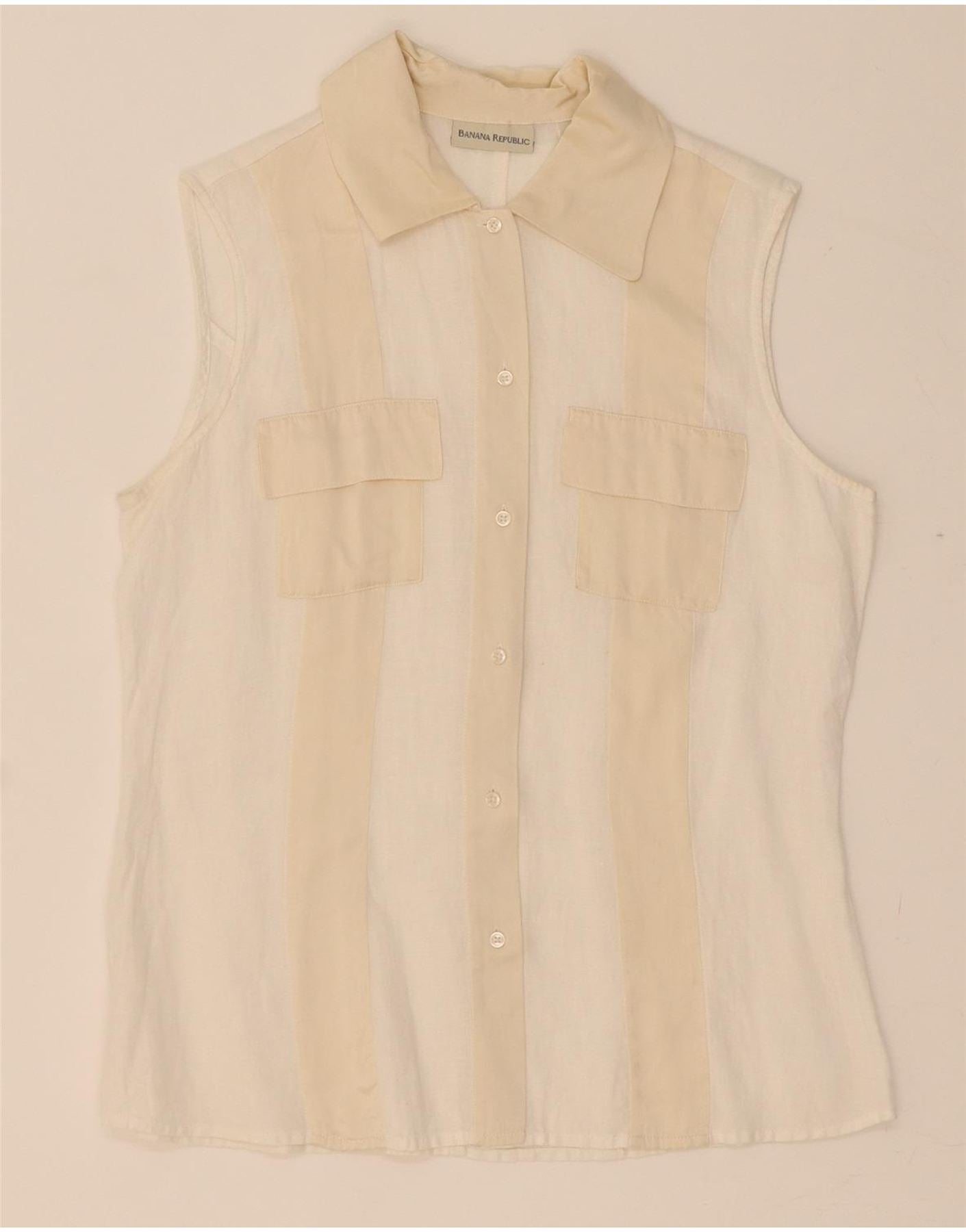 Home > Odzież vintage z Republiki Bananowej > Damskie > BANANA REPUBLIC Womens Sleeveless Shirt Blouse UK 12 Medium Beige Striped