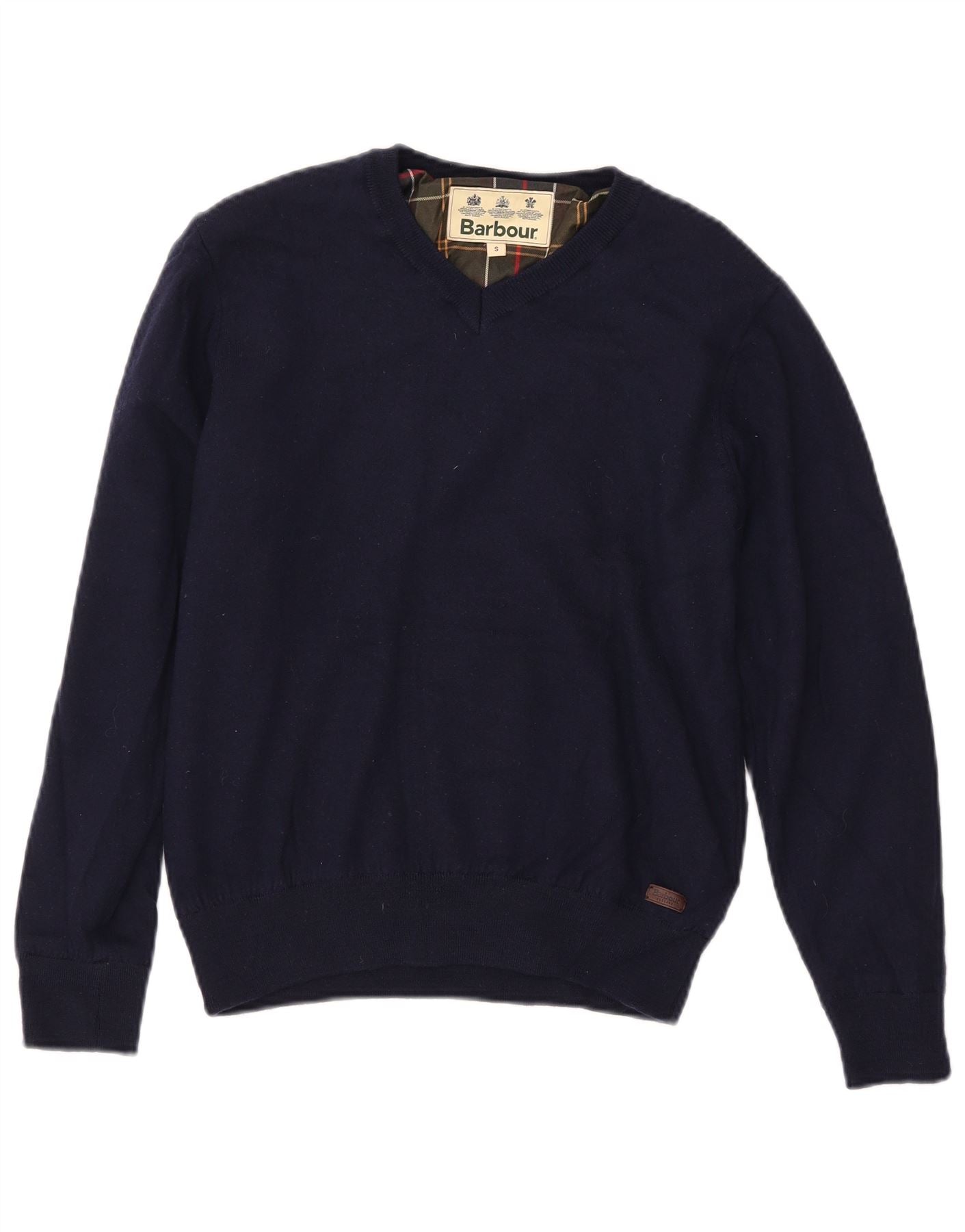 Sweter damski BARBOUR z dekoltem w kształcie litery V, UK 10, mały, granatowy, wełniany