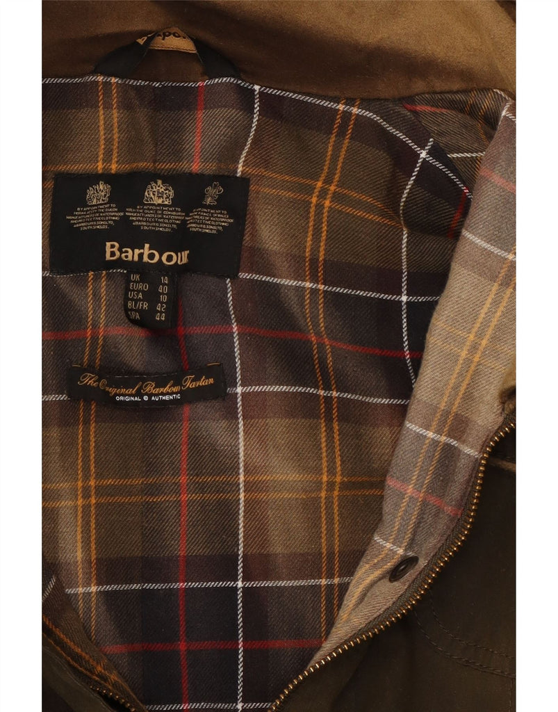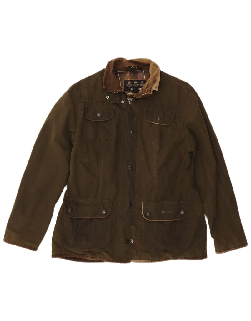 BARBOUR Womens Waxed Cotton Jacket UK 14 Large Khaki Cotton