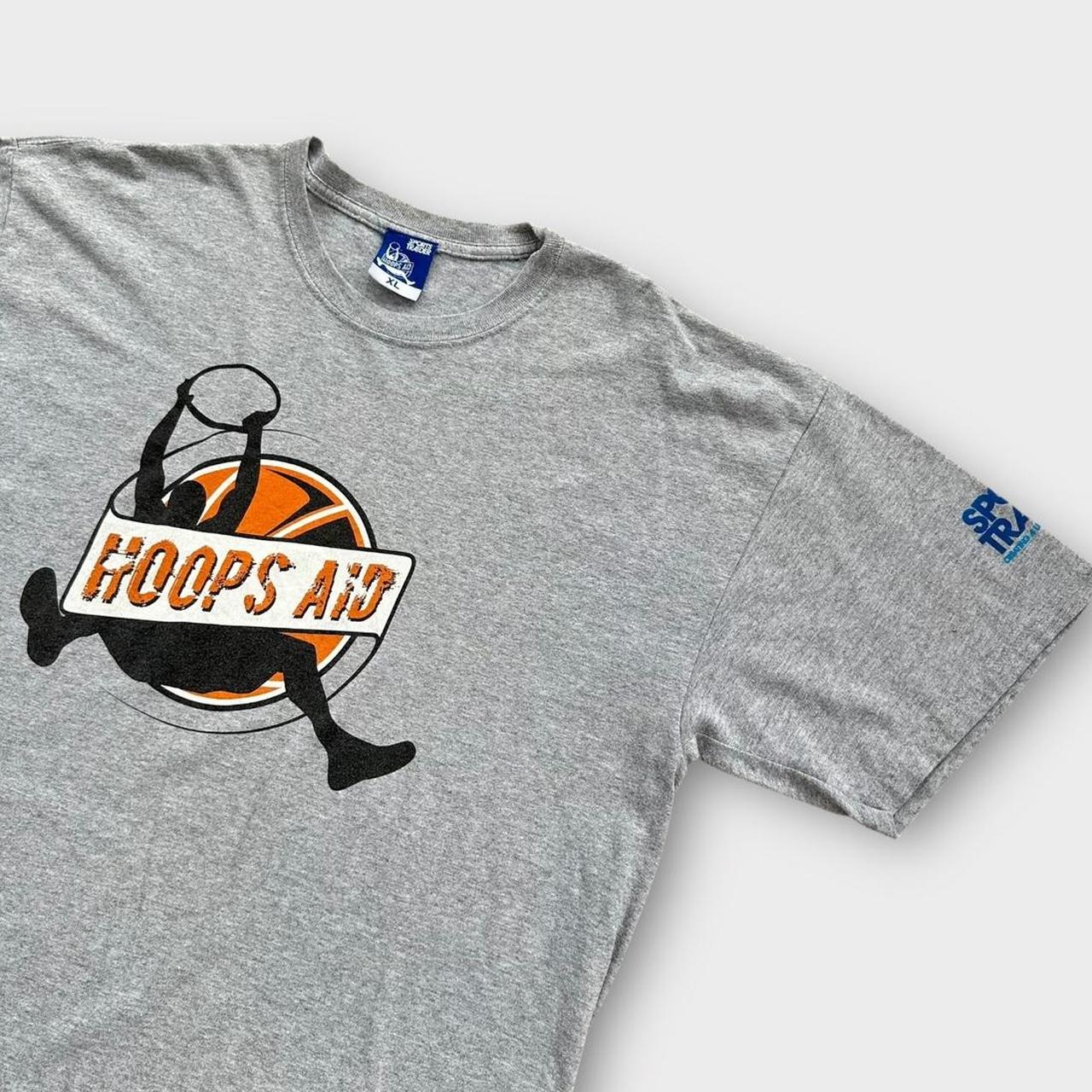 Szara koszulka Hoops z grafiką koszykarską z początku XXI wieku i nadrukiem na piersi