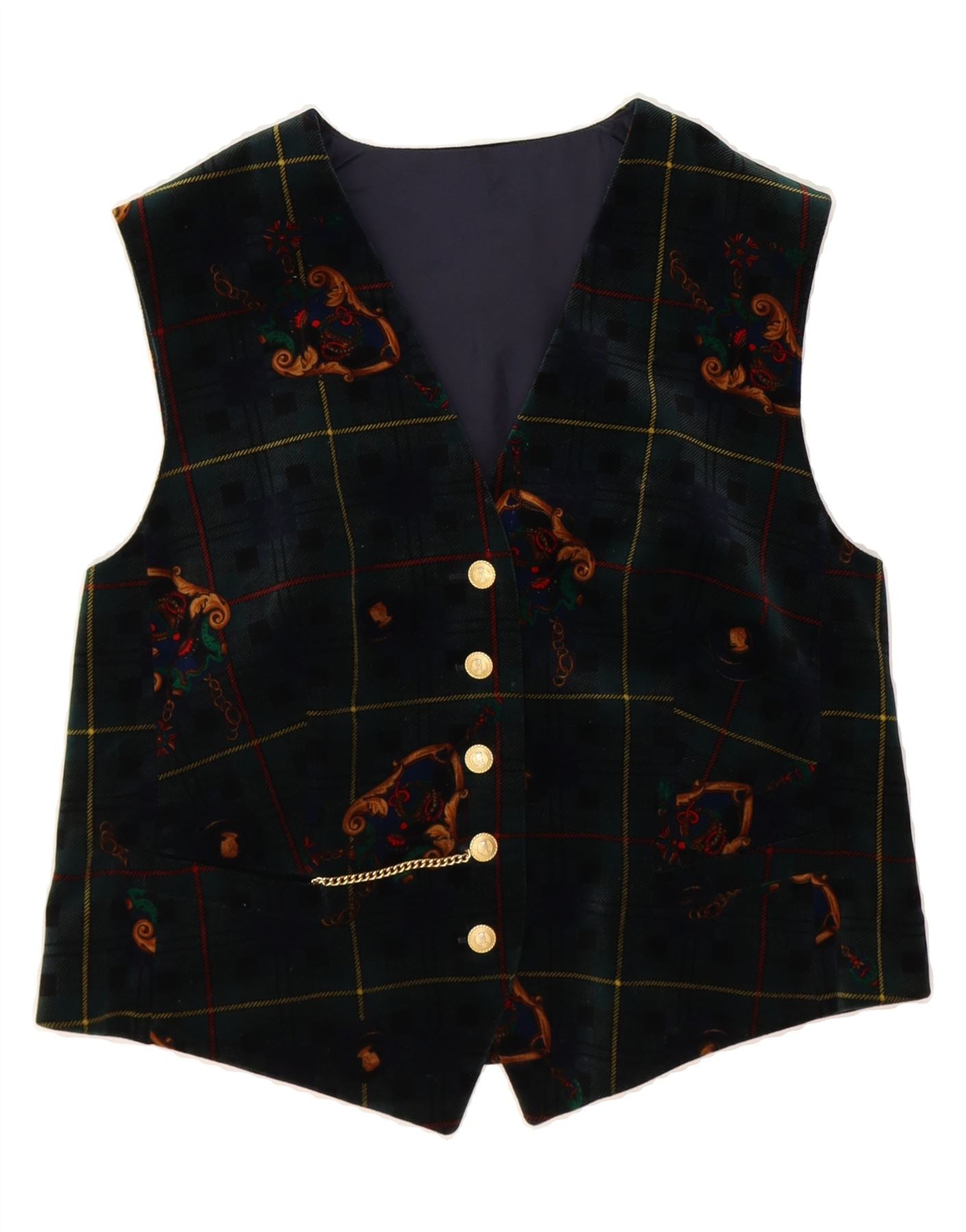 - AI Description: This pre-owned Basler waistcoat is a classic addition to any gentleman's wardrobe. Crafted from luxurious green velvet with a plaid pattern, this regular fit waistcoat features a V-neckline and sleeveless design. It fastens with buttons and includes practical pockets. While in excellent condition, there are minor defects to note: loose stitching on the buttons and minor discoloration on the inner lining. Label size 44.