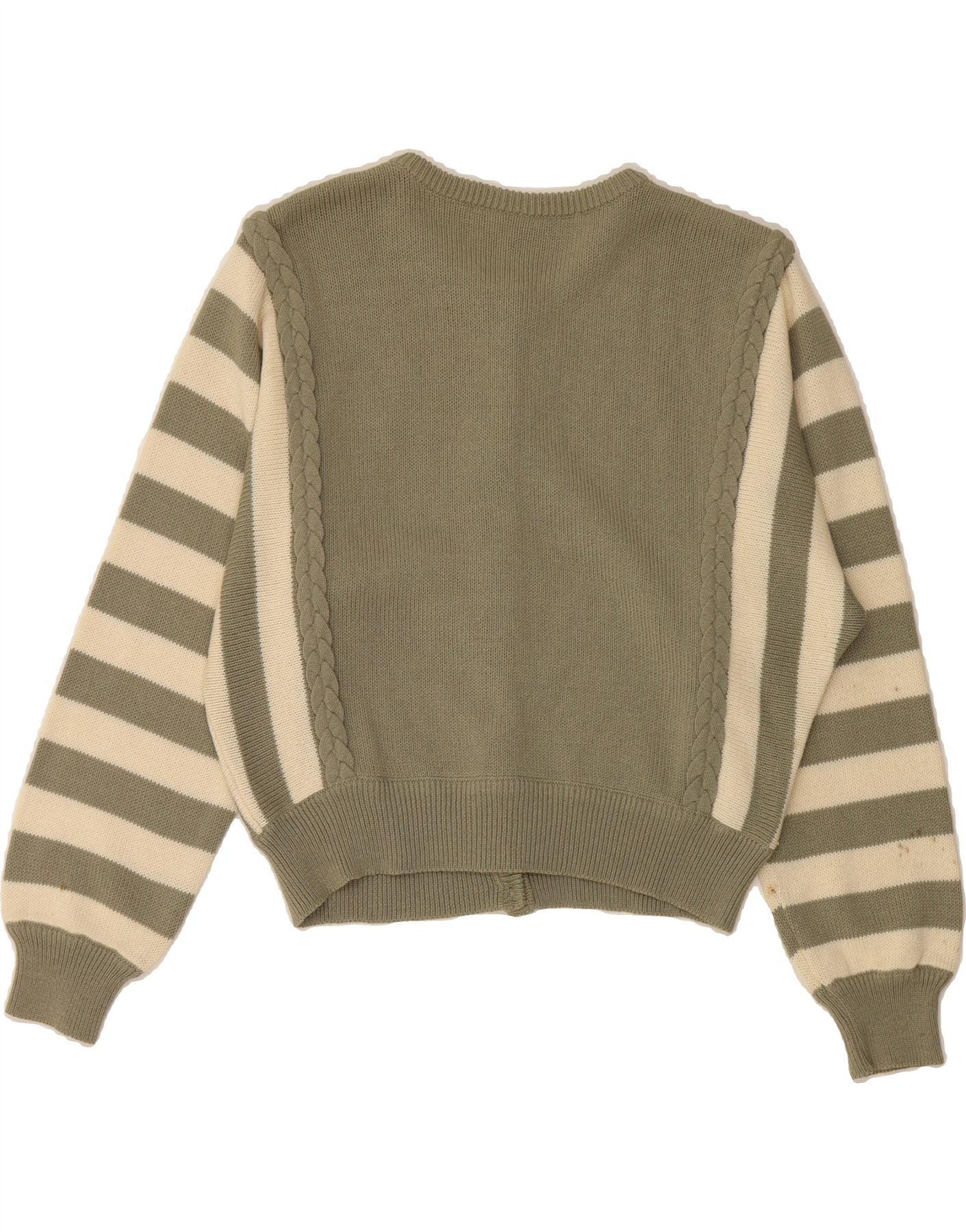 BASLER Womens Cardigan Sweater UK 18 XL Green Striped Wool
