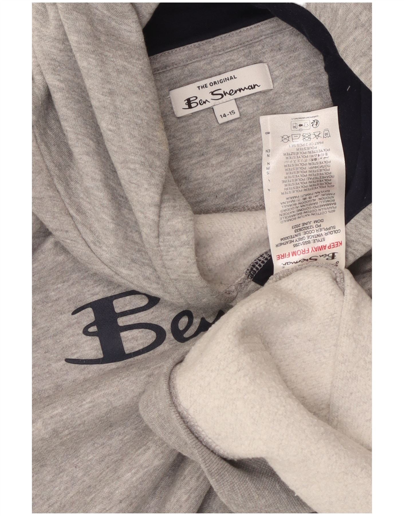 BEN SHERMAN Boys Graphic Hoodie Jumper 14-15 Years Grey Cotton