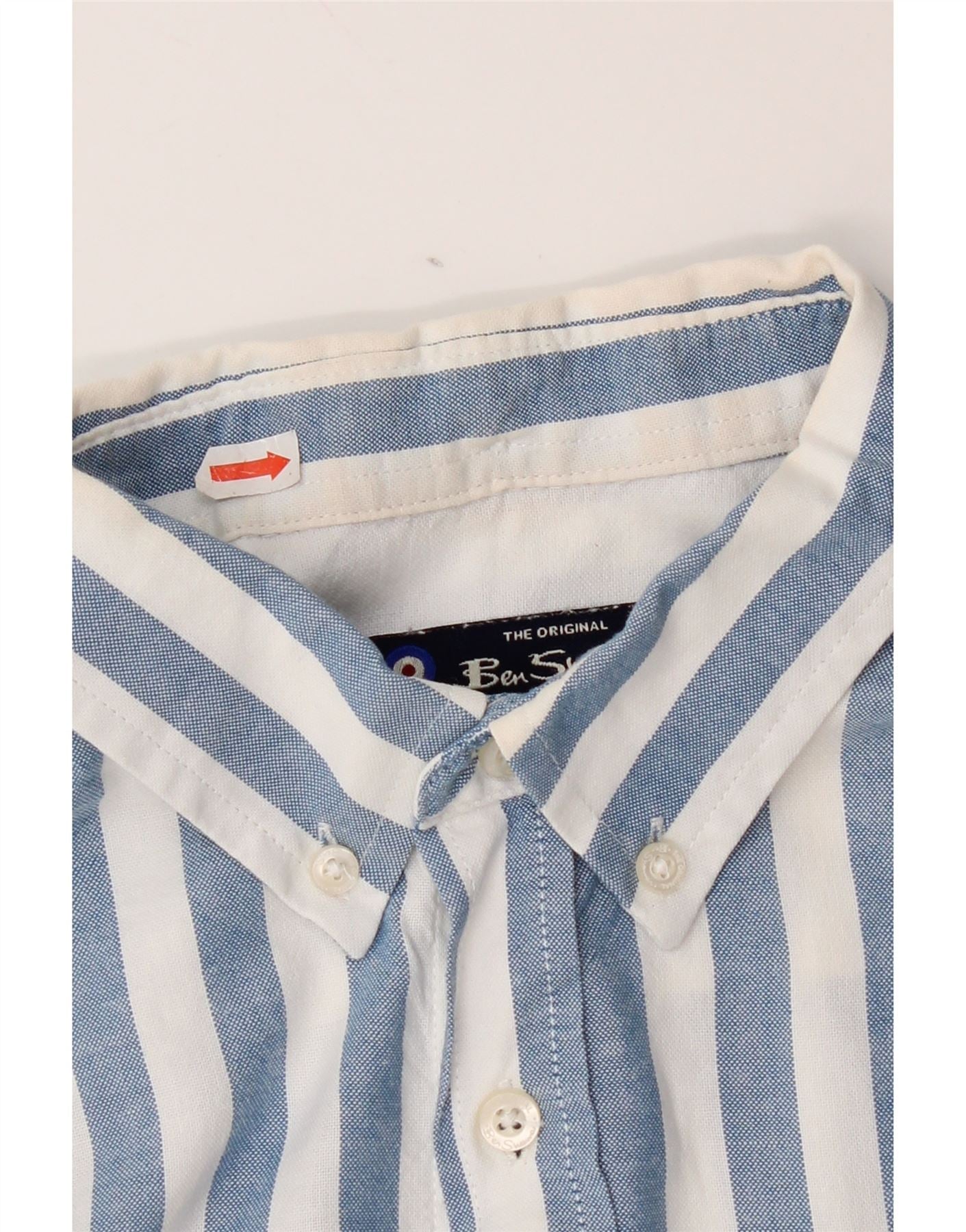 Home > Vintage odzież Bena Shermana > Męskie > Męska koszula z krótkim rękawem Ben Sherman, bawełniana w średnie niebieskie paski