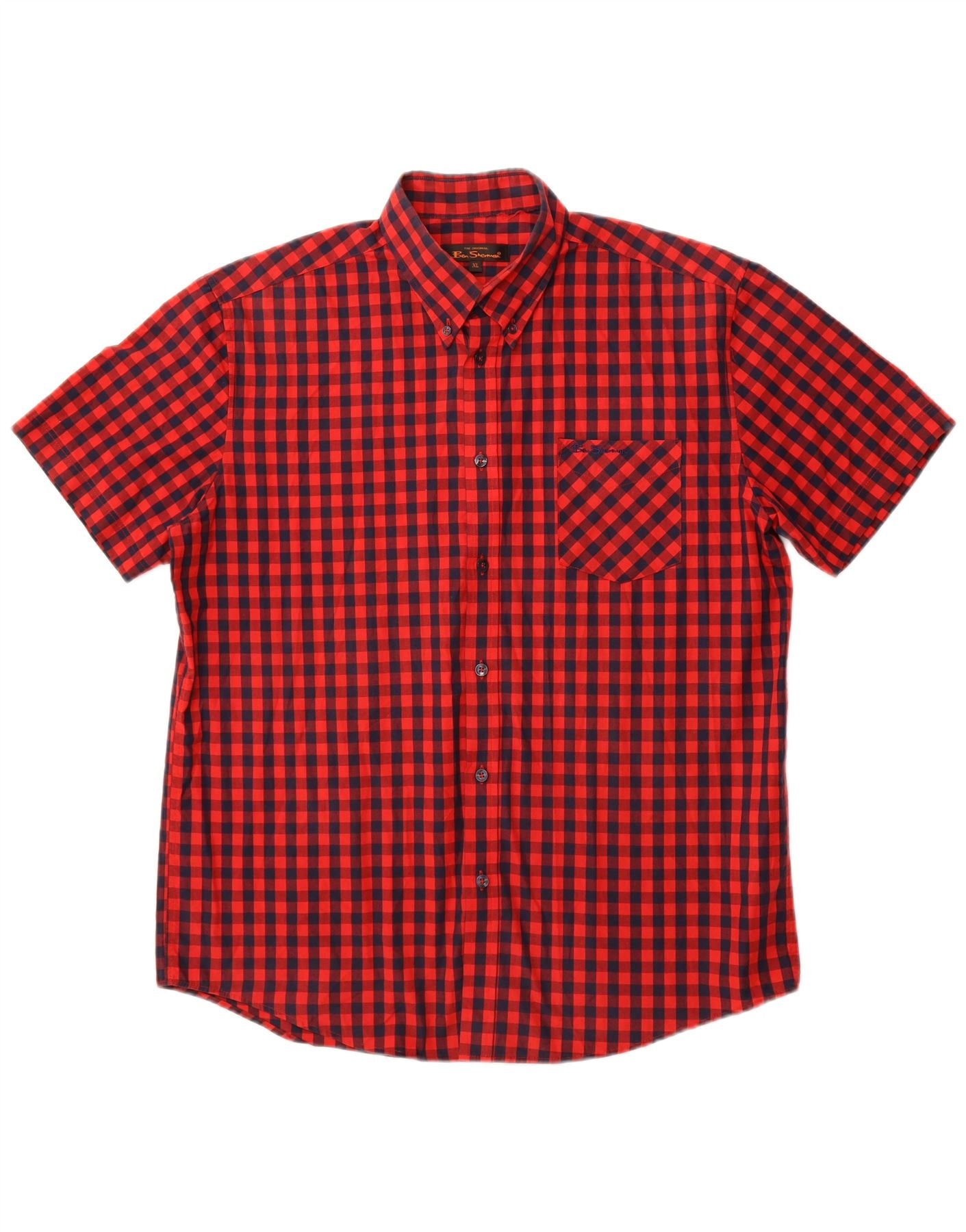 - AI Description: This Ben Sherman mens shirt is crafted from a comfortable cotton blend fabric. It features a classic red gingham check pattern. The collared neckline and button-up front offer a timeless look. Short sleeves and a regular fit ensure comfort and ease of wear. A subtle logo accent and practical pockets complete the design, perfect for a smart casual style.