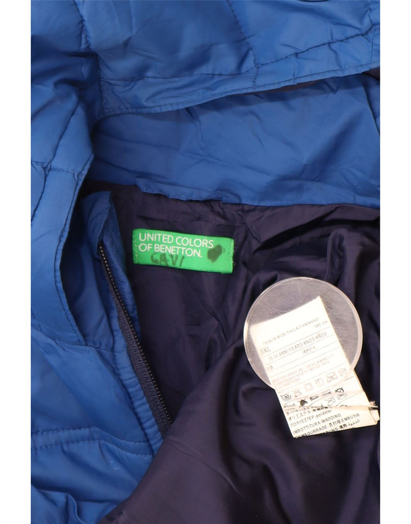 BENETTON Boys Hooded Padded Jacket 13-14 Years 3XL Blue Polyester