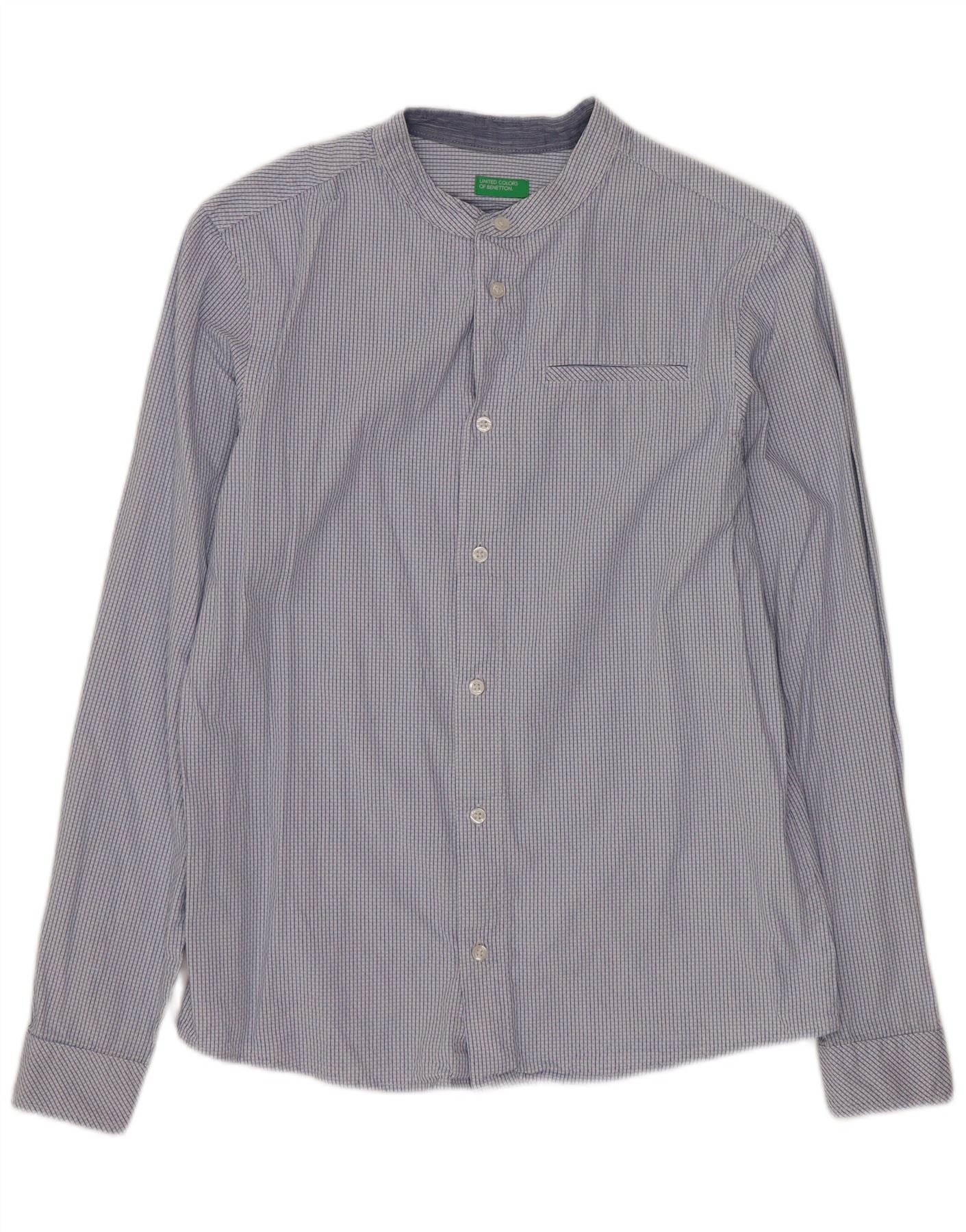 BENETTON Boys Shirt 13-14 Years 3XL Blue Check Cotton