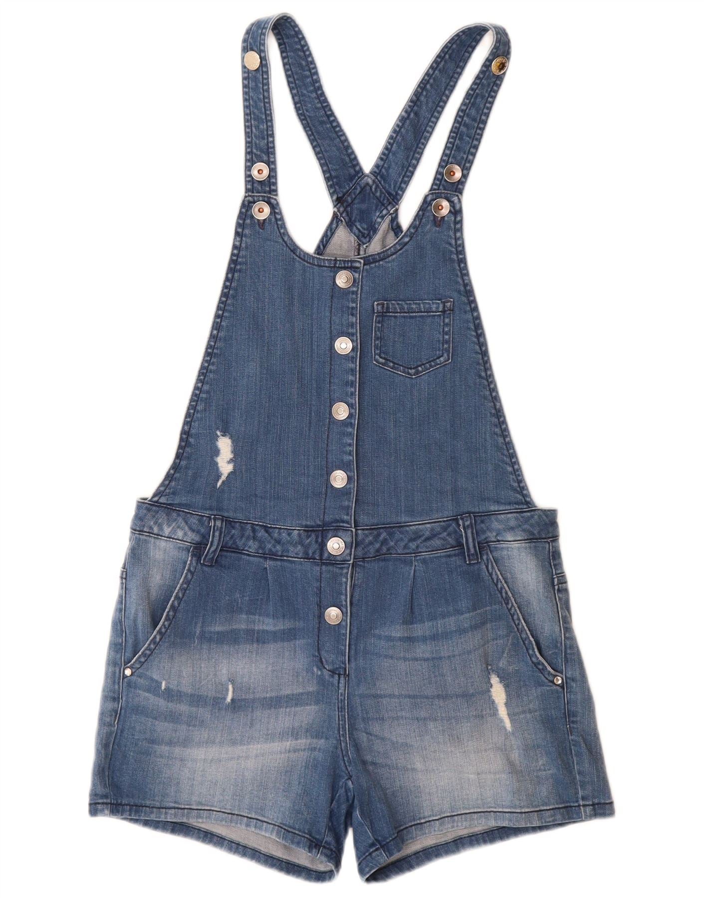 BENETTON Girls Distressed Dungarees Denim Shorts 13-14 Years 3XL W30 Blue