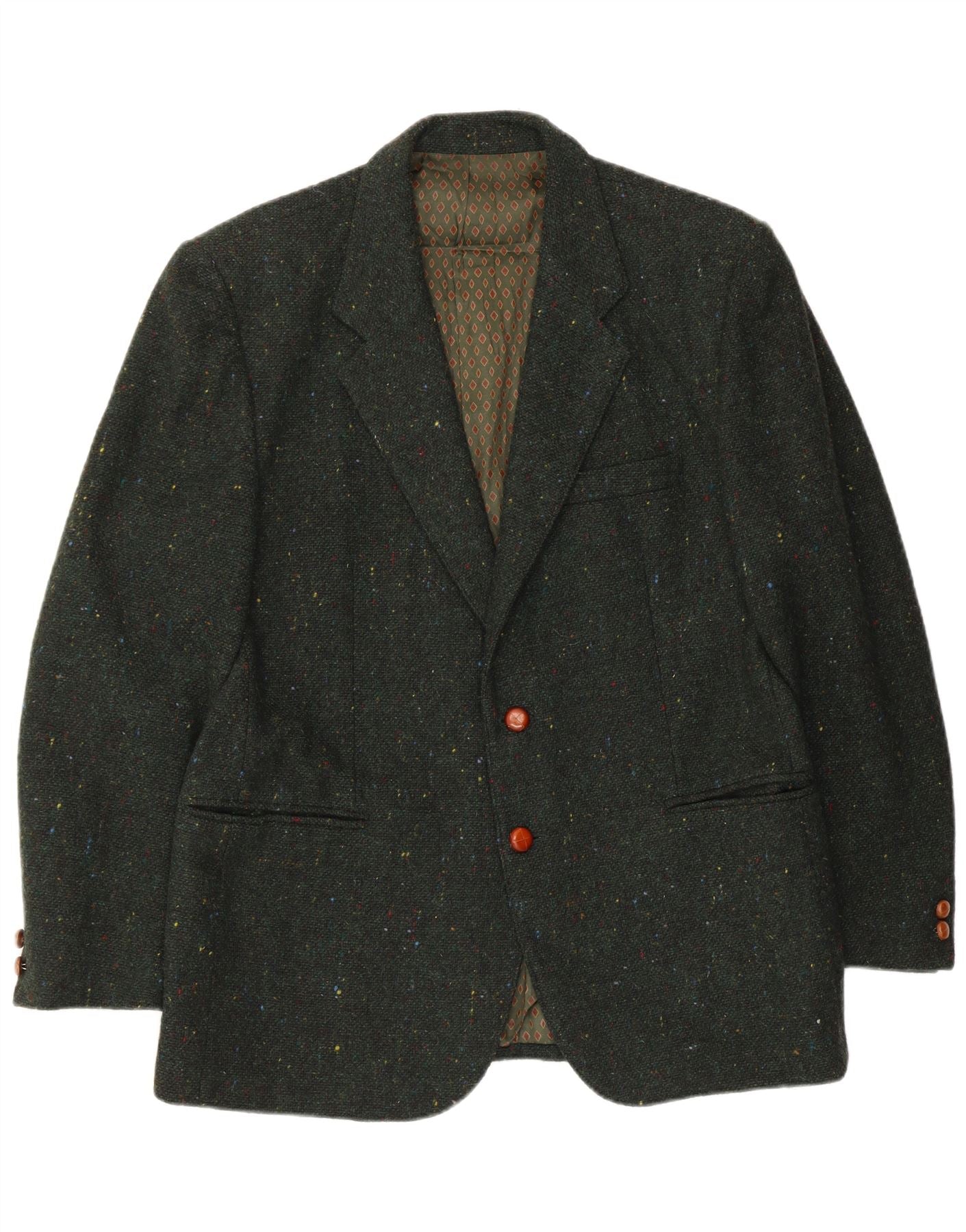 Home > Vintage odzież Benettona > Męskie > Męska marynarka zapinana na 2 guziki Benetton IT 50, duża, zielona wełna w cętki