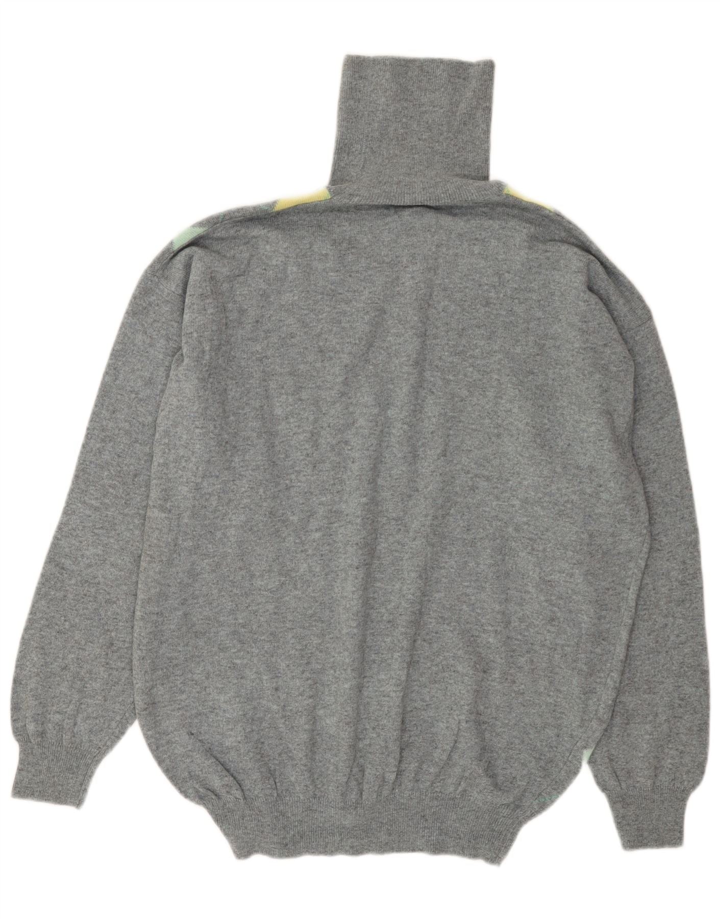 Home > Vintage odzież Benettona > Męskie > BENETTON Męski sweter z golfem, duży, szary, argyle/diamentowa wełna