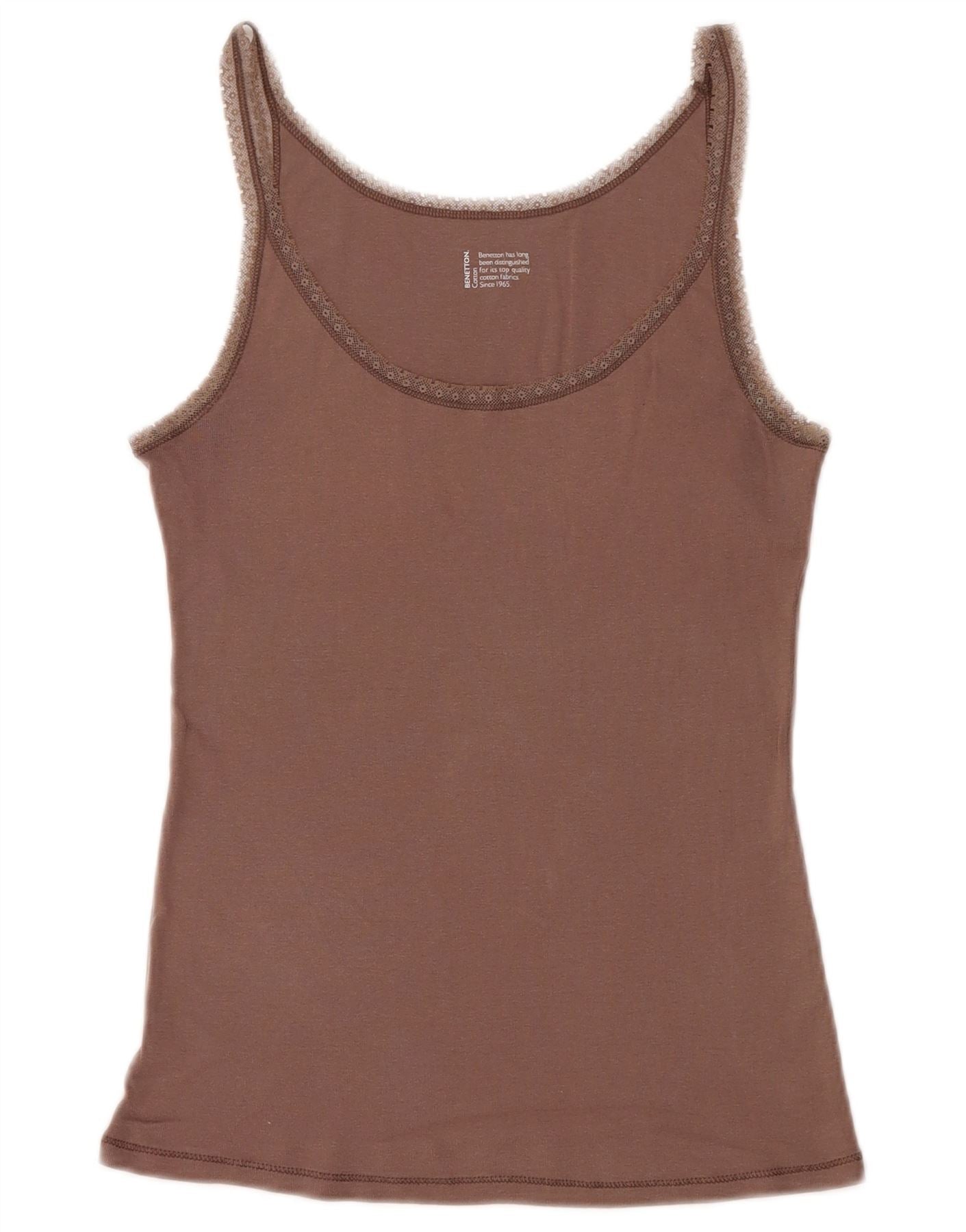 Home > Vintage odzież Benettona > Damskie > Damski top na ramiączkach BENETTON UK 14, duży, brązowy, bawełniany