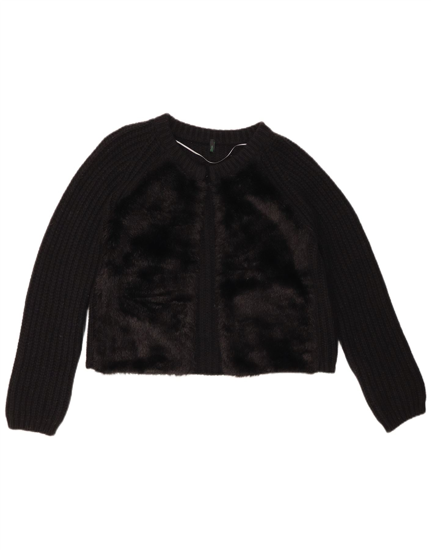 BENETTON Damski sweter typu Crop Cardigan UK 10 Small, czarna wełna