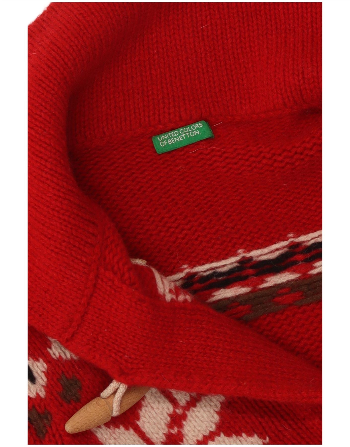 Sweter damski BENETTON Crop Cardigan UK 10 Small Red Fair Isle