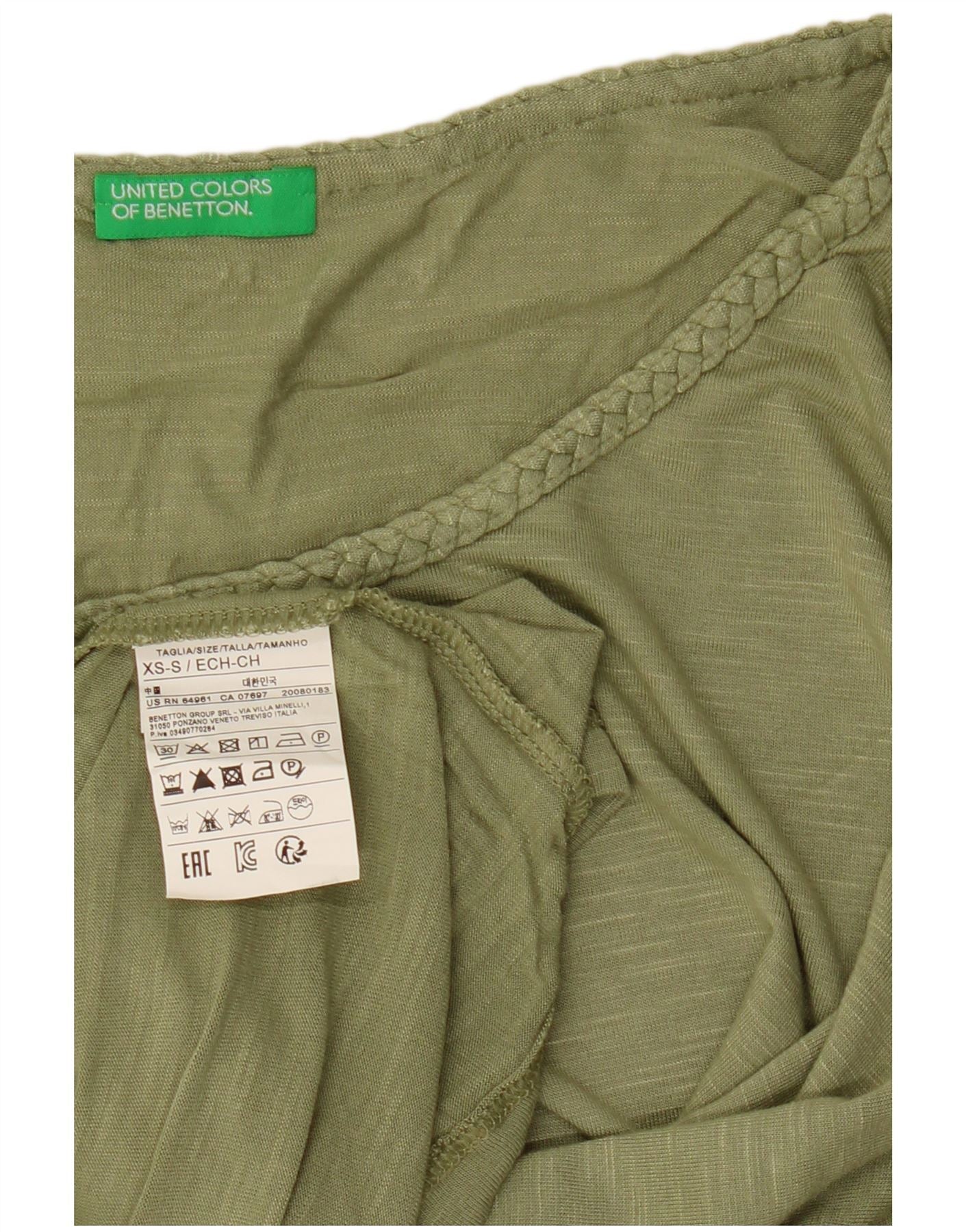 Damska koszulka typu Crop Oversize BENETTON Top UK 6 XS Khaki z nakrapianą wiskozą