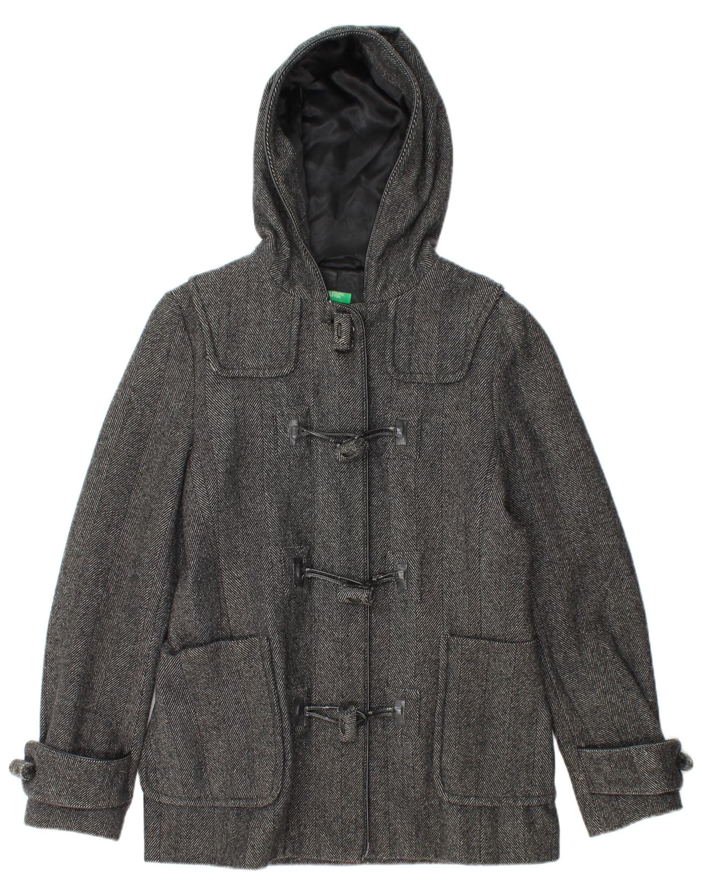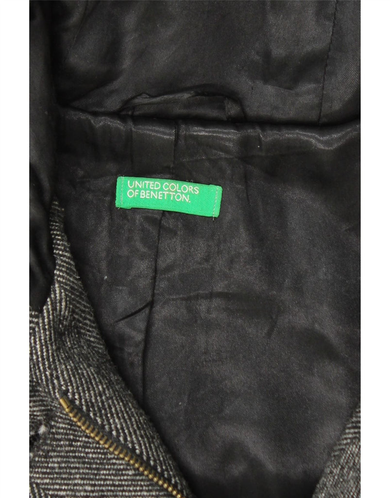 BENETTON Damski płaszcz z kapturem IT 44 Średniej czarnej wełny w jodełkę