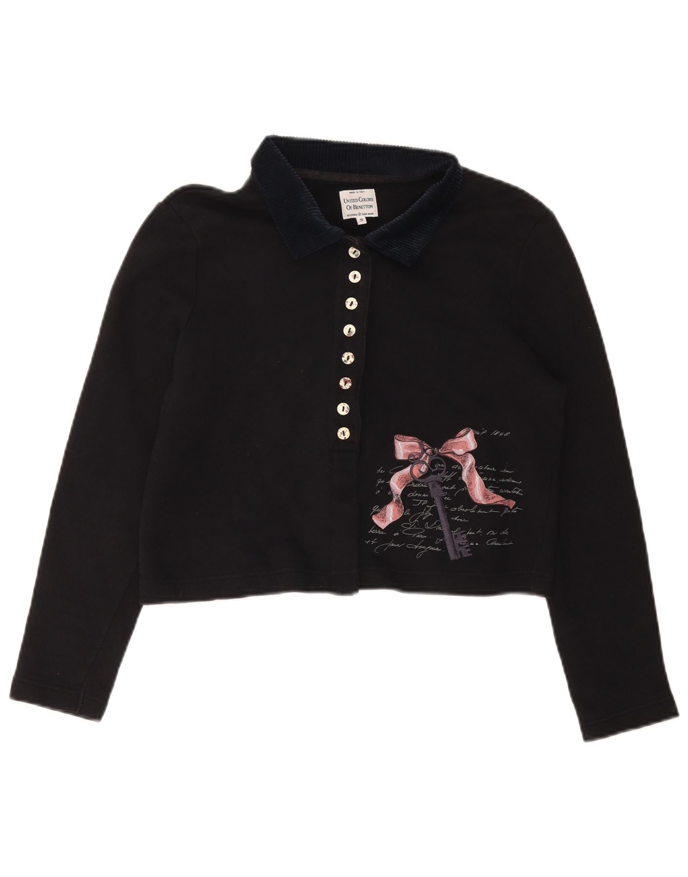 Home > Vintage odzież Benettona > Damskie > Damska koszulka polo o kroju oversize z grafiką BENETTON UK 10, mała czarna