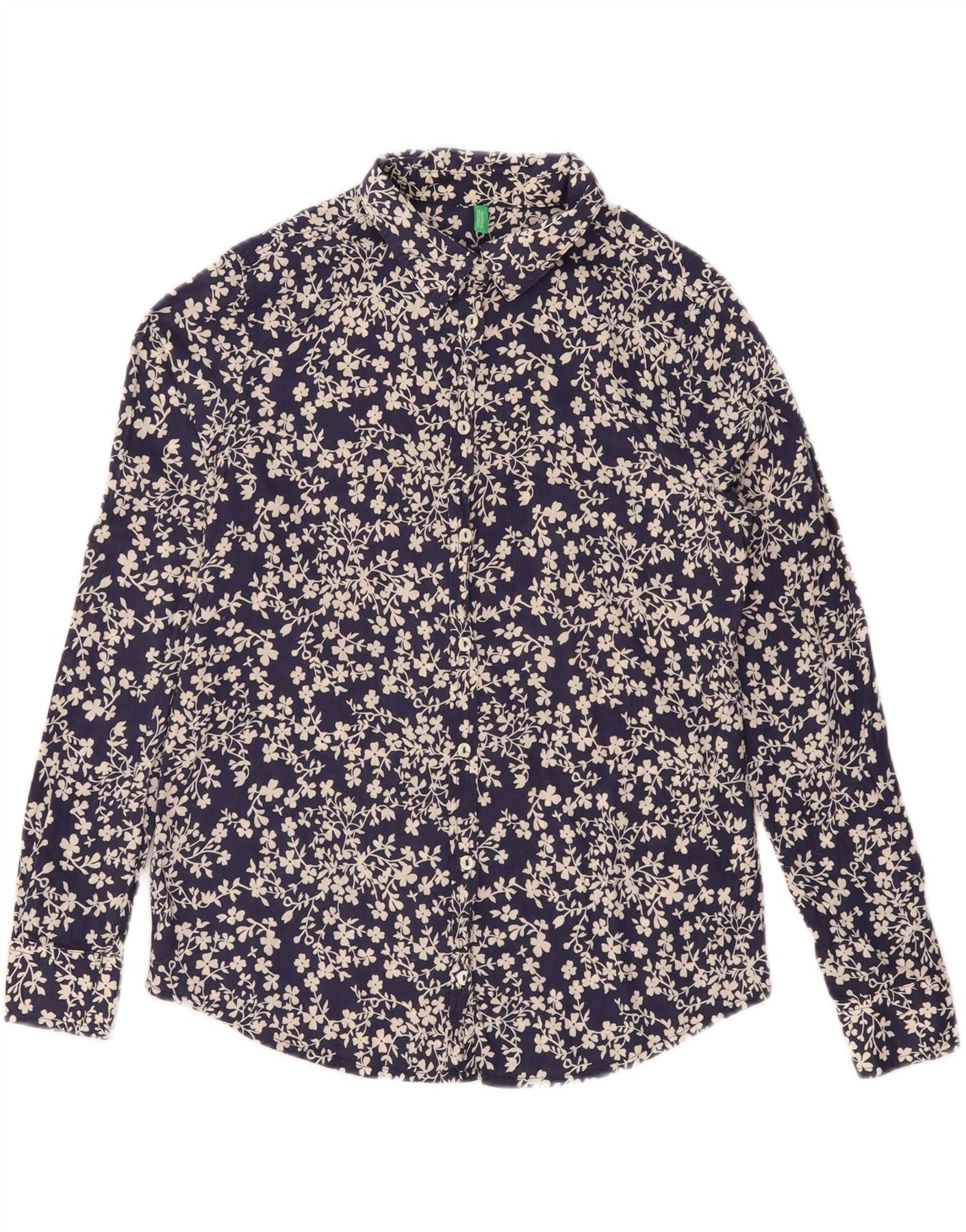 Home > Vintage odzież Benettona > Damskie > Koszula damska BENETTON oversize UK 10, mała, granatowa, bawełniana w kwiaty