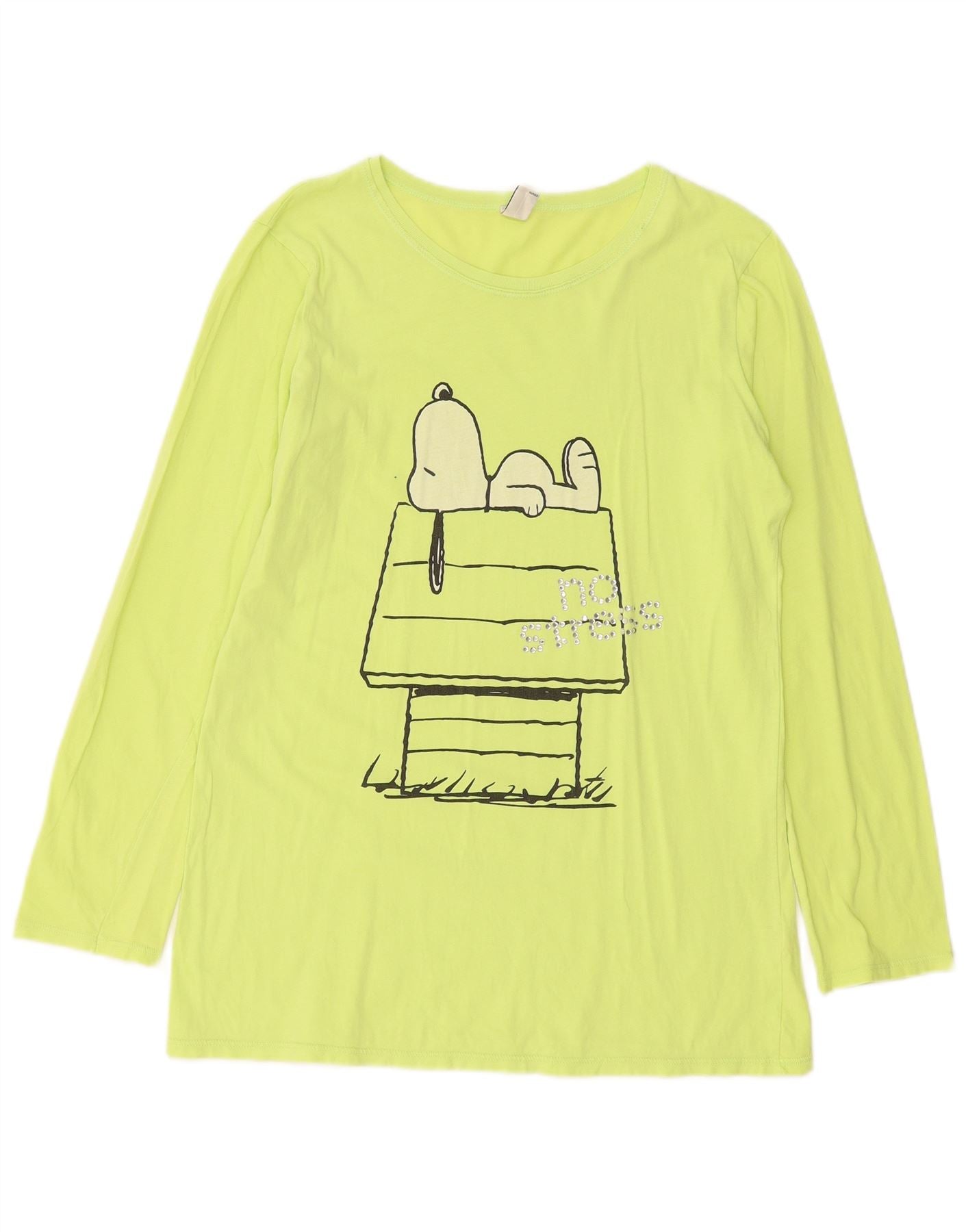 Damski top BENETTON Peanuts Graphic z długim rękawem, UK 14, średni zielony, bawełniany