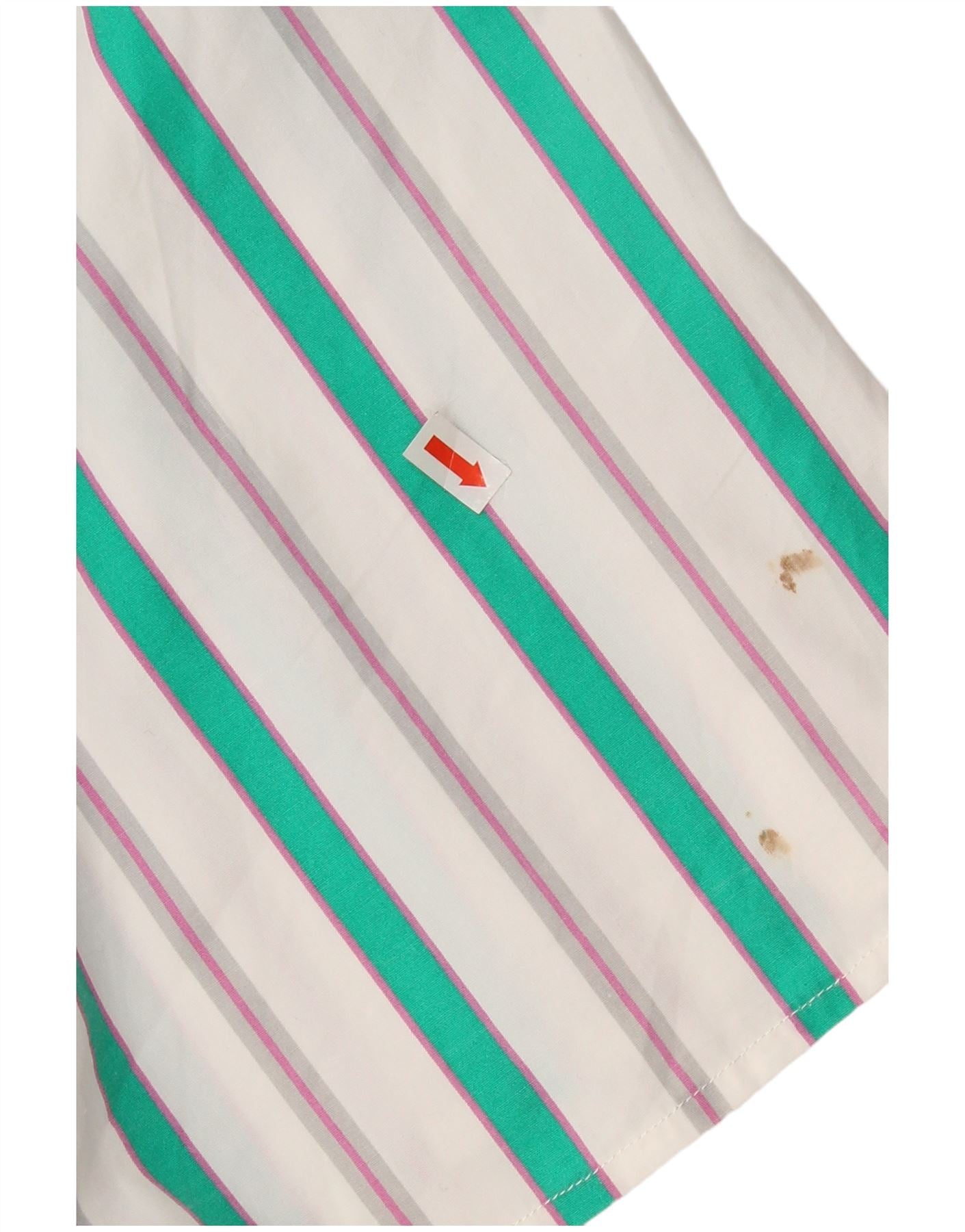 Opis sztucznej inteligencji: Ta koszula damska United Colors Of Benetton jest wykonana z wyrazistej tkaniny. Charakteryzuje się żywym, wielokolorowym wzorem w paski w kolorze białym, zielonym i fioletowym. Koszula ma klasyczny dekolt z kołnierzykiem i przód zapinany na guziki. Długie rękawy zakończone mankietami zapinanymi na guziki dopełniają całości. Dwie kieszenie na piersi z akcentami na guziki dodają praktycznych detali. Regularny krój zapewnia wygodę i wszechstronność noszenia.