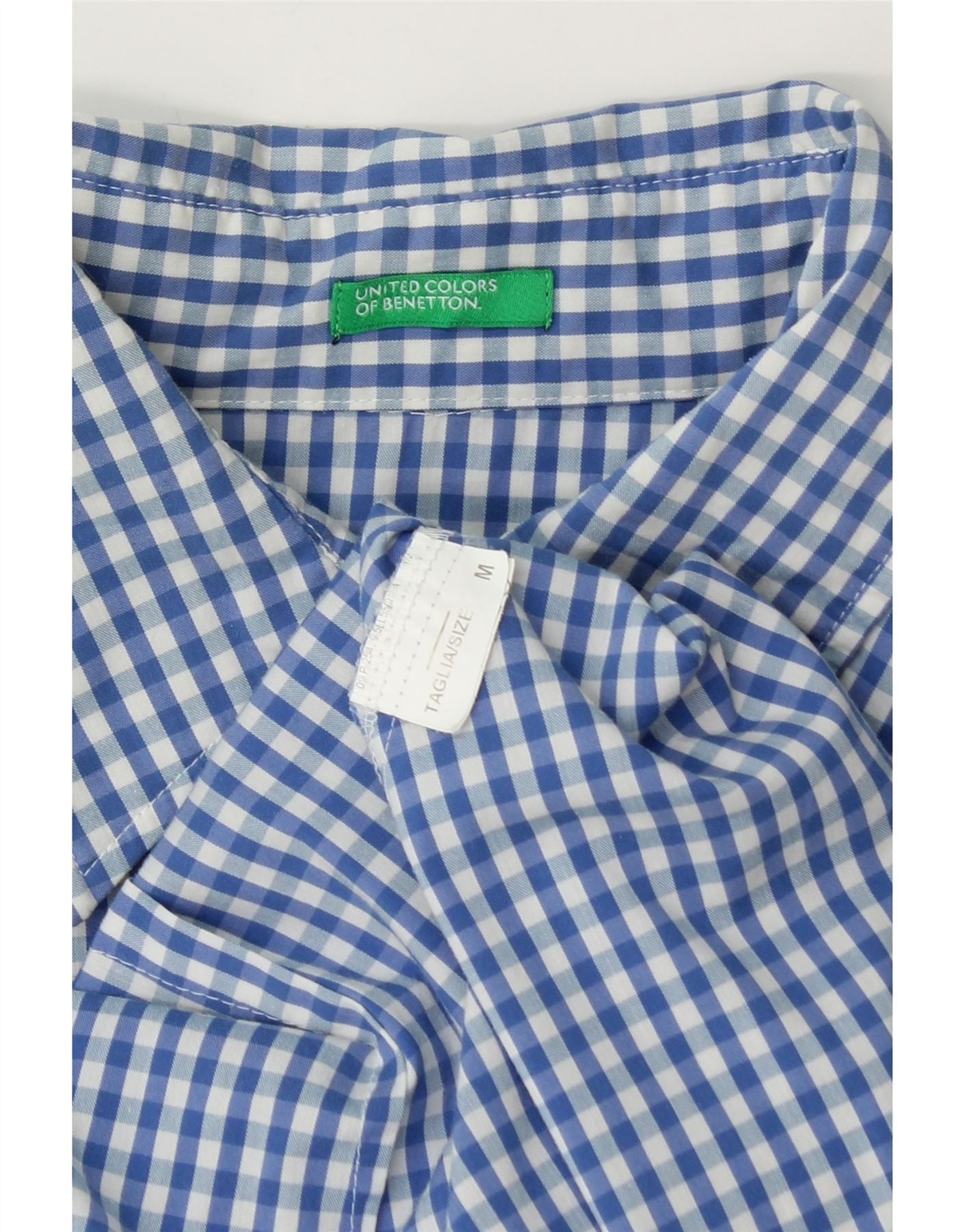 Home > Vintage odzież Benettona > Damskie > Damska bluzka koszulowa z krótkim rękawem BENETTON UK 12, średnia niebieska kratka